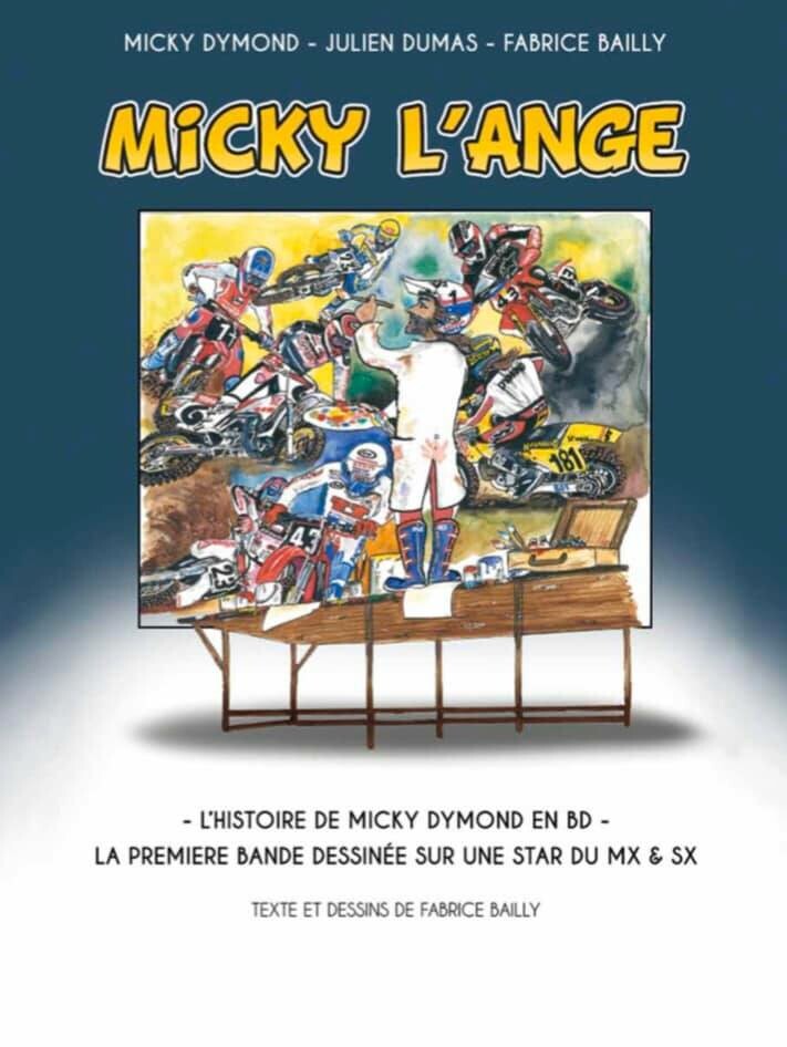 Two-time AMA 125 Pro Motocross Champion and eighties' legend Micky Dymond recently returned to the Transborgamo race in Italy (his first time abroad since he had that terrible cycling accident a couple years back). Dymond is doing great, and he told us he really enjoyed getting back to the big Italian invitational for legends like U.S. visitors Jeff Stanton, Broc Glover, Danny Laporte, Chuck Sun, Jim Gibson, Doug Dubach, himself, and more. While over there, Micky got his hands on a copy of the amazing comic book that French artist Fabrice Bailly made about his life, entitled Micky L'Ange. According to Dymond, Bailly worked with Micky's family while he was still recovering from his head injury from the bicycle accident, and they sent many photos over from his career for inspiration for the comic. The result is a beautiful work of modern motocross art! I have only seen a few pages that Dymond sent over, and also from the Facebook page of his longtime friend and supporters, the Moreau family. (When Dymond went to the Paris-Bercy Supercross for the first time in the mid-eighties he was only the "fourth Honda factory rider" behind David Bailey, Rick Johnson and Johnny O'Mara, and the distributor over there only had three bikes available, so the Moreau family dealership helped him out with a loaner Honda CR250, marking the beginning of a close friendship that has lasted ever since.)