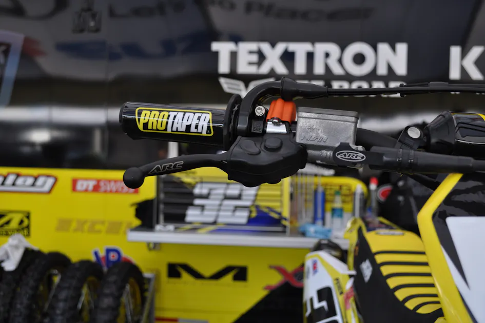 Cameron McAdoo's bike under the Monster Energy/Pro Circuit Kawasaki team tent. Align Media ![Monster Energy Yamaha Star Racing is another team sponsored by ARC Levers.]()