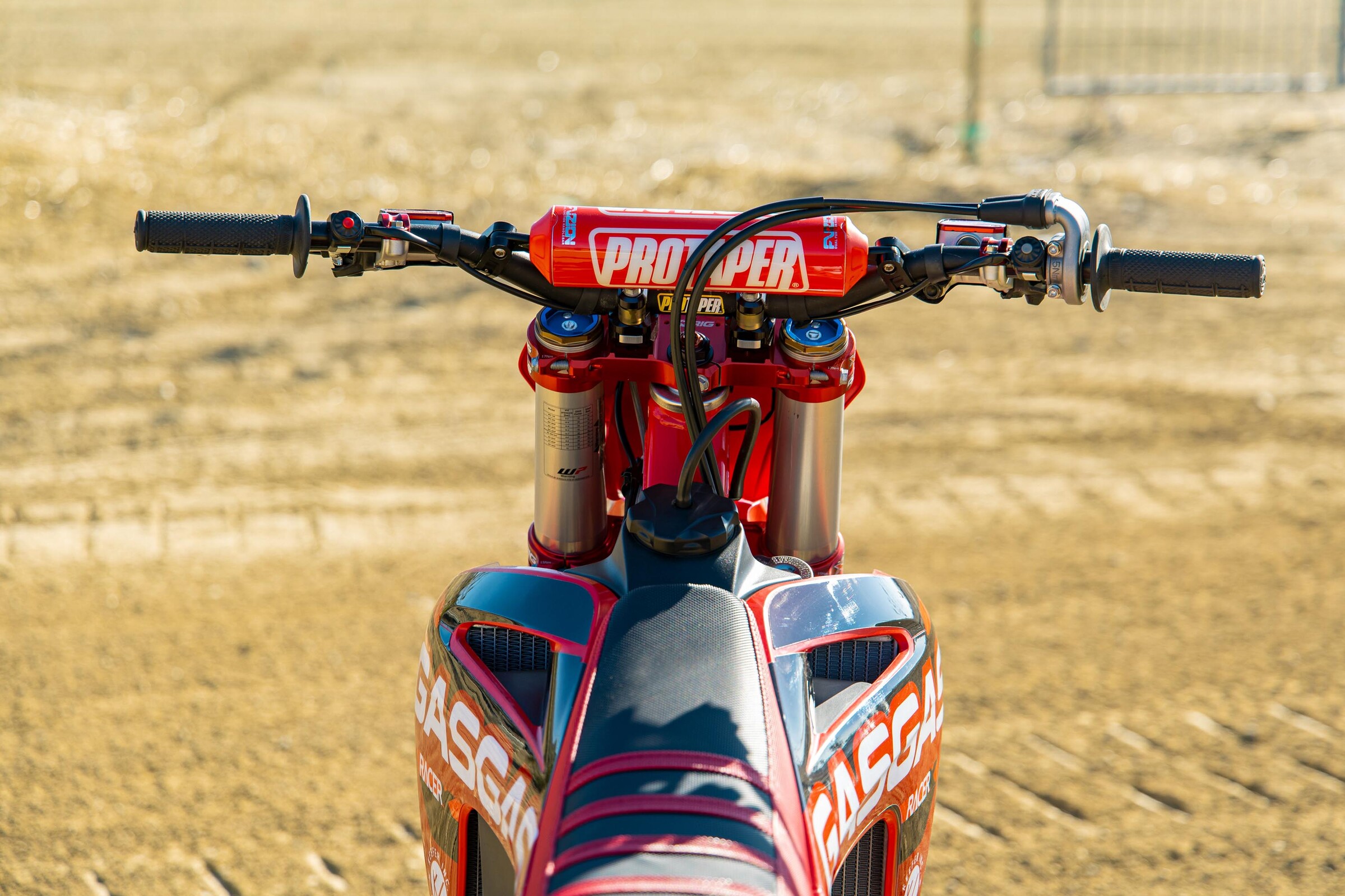 For our ’23 GasGas MC 450F Garage Build, we hooked up with former pro mechanic Eddie Laret. Eddie spent many years working with up-and-coming riders like Ryan Villopoto, Blake Baggett, Austin Stroupe, Mike Alessi, and Nico Izzi. After five years on the amateur tour, he decided to move to the pro supercross/motocross series. Eddie went on to work for the Rockstar Suzuki, MotoConcepts, Valli Yamaha, and Star Racing teams. He had a group of elite riders through the years, and they had some success. After starting a family, he decided it was time to find a 9-to-5 job. He’s a family man now who loves to ride dirt bikes and build beauties like this one. He has always been a mechanic that pays attention to detail and puts a lot of pride in his bikes.