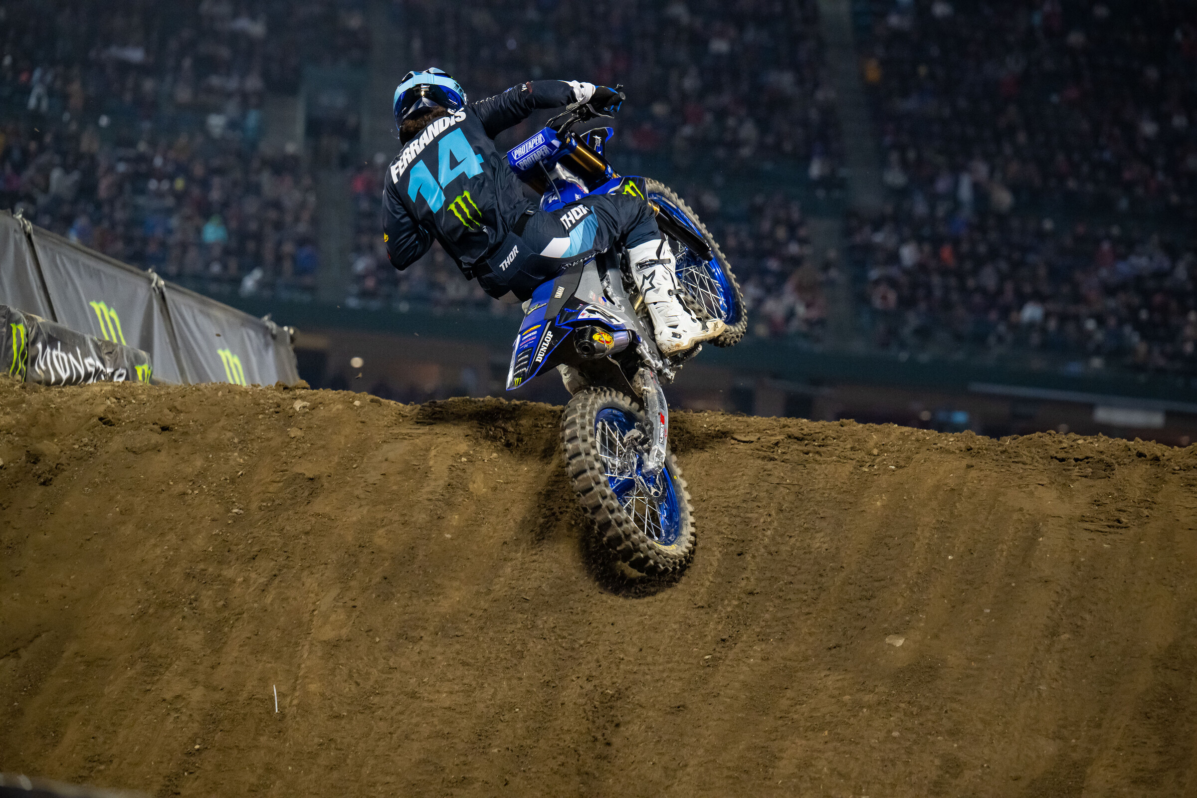Dylan Ferrandis: Yeah, sure. After such a bad season last year and two bad seasons in supercross, it was good to finally show up at A1 and be ready and show something. I had a good afternoon and a good heat race, but unfortunately my main event had a bad start. I banged bars with AC [Adam Cianciarulo] and I had to shut off the throttle. So yeah, bad start and then I just worked my way up. I felt like I had a shot at the podium. At some point I think I was third and a little mistake cost me the podium and [Cooper] Webb passed me. But we were battling hard with Webb, I passed him, he passed me back. Just happy to be in the mix. I finished in Chase’s [Sexton] rear wheel so I feel like I have a shot for this championship. It’s good to finally have this feeling.