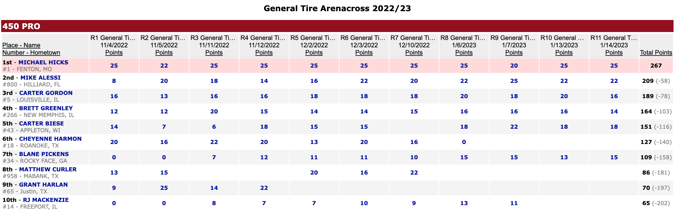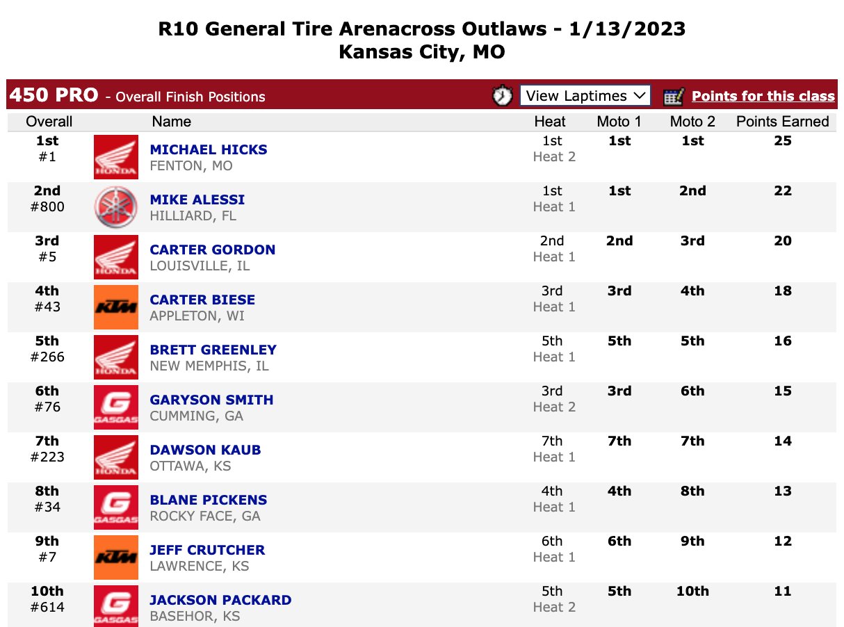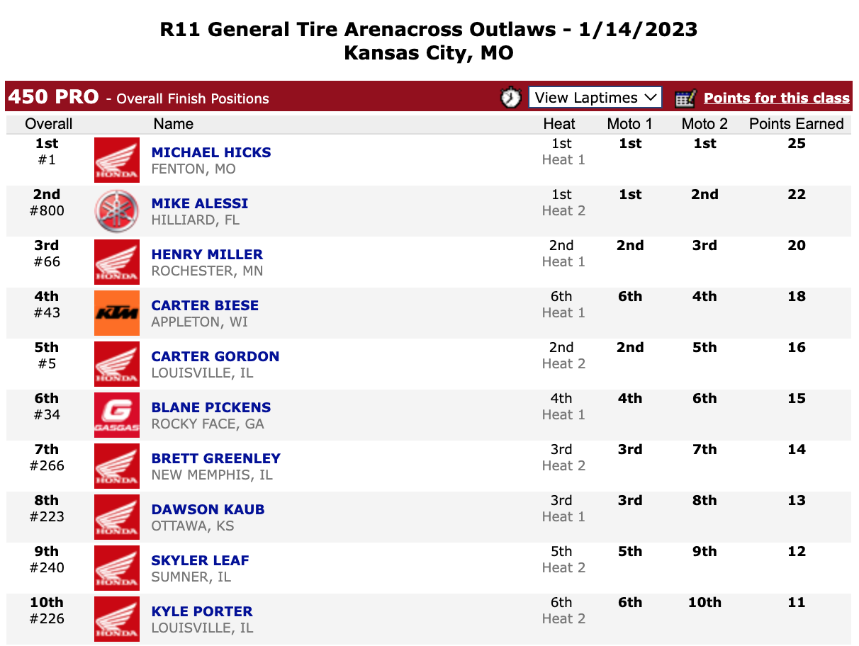 | Michael Hicks (Honda) | General Tire Arenacross Outlaws | 450 Pro |