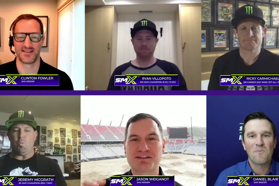 Call it a Champion’s Edition of SMX Insider! Jeremy McGrath, Ricky Carmichael and Ryan Villopoto join SMX Insiders Jason Weigandt, Daniel Blair and Clinton Fowler to share their thoughts on the top stories in SuperMotocross.