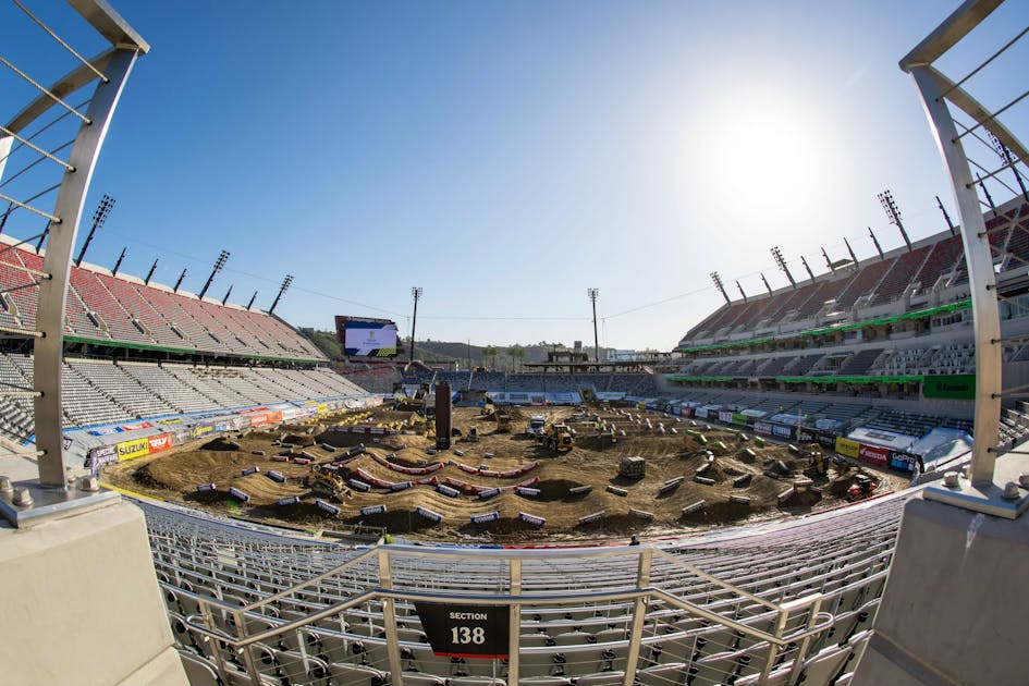 After an odd weekend off with the Oakland Supercross being postponed until mid-February, Monster Energy AMA Supercross is finally ready to race the second round of this 17 round championship today in San Diego. Snapdragon Stadium is hosting supercross for the first time today and has seen quite a week inside the freshly constructed grounds. Last Saturday, Monster Jam had a show within this stadium while it poured down rain in Southern California. By Monday, the rain was finally coming to an end but the dirt within the stadium was completely drenched.