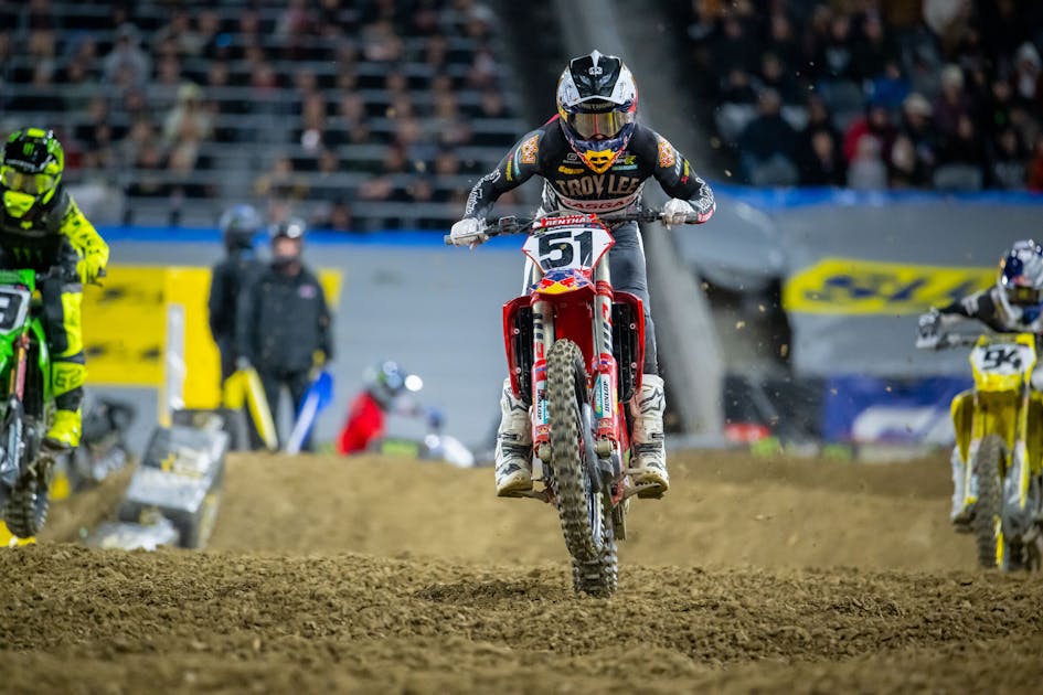 Absolutely. For me, the new bike has been great. It’s very easy to make small changes and adapt to the tracks. I did a big few weeks in California testing on it and then went to Florida for a month and just rode the bike, got really comfortable with it. Came to California and rode it again and was right on pace at the test track, so that was good. Anaheim was a weird one. Just a tricky track. Kind of was off all day a little bit, just weird. Then main event of course get a holeshot and get in the lead. Struggled a little bit and then obviously a couple mistakes took me out of that, so it was a bummer to miss round two with the weather but it’s good to come back here in the new Snapdragon stadium and have a good result. There was a lot of pressure tonight, just the battle in the race was intense. So that was good to come through that. Definitely the new bike is awesome and it is a contract year for me, so definitely want to have a good season.