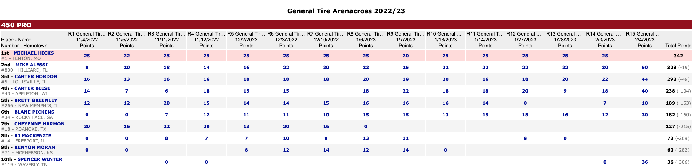 | Michael Hicks (Honda) | General Tire Arenacross Outlaws | 450 Pro |