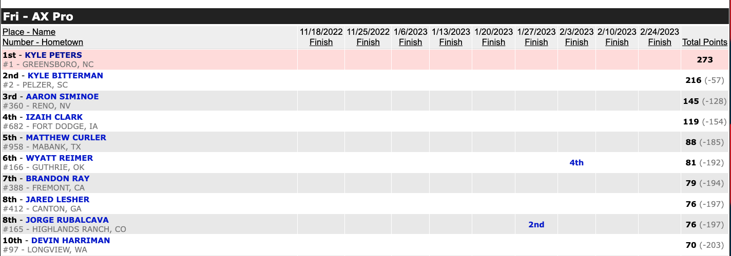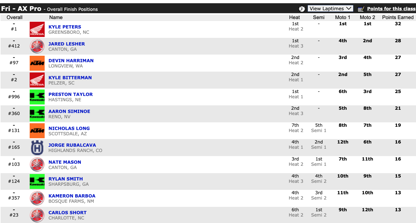 February 25, 2023| Rider | Hometown | Motos | Bike | |
