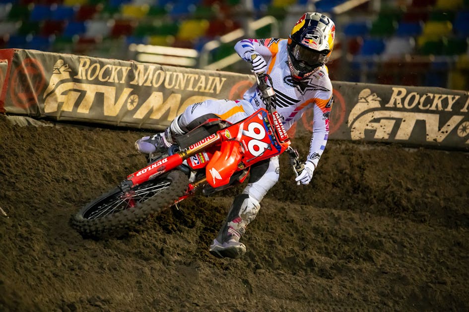 Honda HRC’s Hunter Lawrence won the Daytona Supercross on Saturday in the 250SX class for his third win of the season. However, the win was met with some criticism after he put Monster Energy Yamaha Star Racing’s Nate Thrasher on the ground in the sand on the first lap. The block pass bump and run worked for Lawrence who passed Tom Vialle for the lead on the second lap and never looked back to claim the win. Afterwards, Lawrence was elated to win at the World Center of Racing but also had to answer about his early contact with Thrasher. He spoke about all of that and more with the media in the post-race press conference.