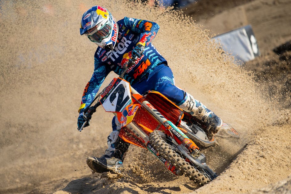 Cooper Webb: No doubt. I think that’s the last few where I’ve struggled. Got a good start which was great and tried to put some good laps down. Ironically enough, we were kind of doing some different lines. I was trying to blitz the whoops and he had that inside. I feel like the blitzing was maybe a little faster, but I left myself open. Then some of our lines in the sand switched and switched back. So, it was tough, man. It was obviously a gnarly track, but then you’re also trying to find the fast lines. They change easily. I made that mistake. Somehow clicked neutral and he got by me. But I tucked right in behind him and I felt like I stayed right there on him, just really hoping for a mistake. Like I said, I was trying the lines in the switch back and the sand. We were going for it. I think we left it all out there, for sure. It was great. Led a lot of laps. He passed me there in the sand and then I got him right back. We bumped going both to that inside. Overall, I’m not stoked for second, but I gave it my best.