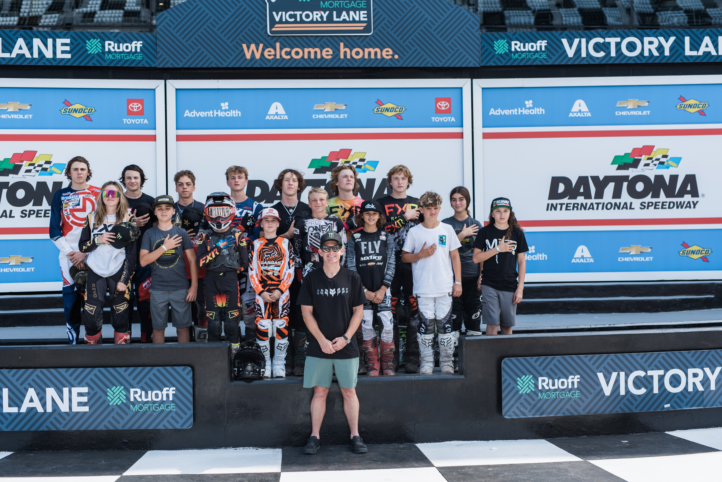 And speaking of Deegan, he was among the high-school students who put their caps and gowns on to be a part of a special ceremony in the Daytona Winner’s Circle, through Andrea Leib’s On Track School. So was top young Husqvarna prospect Casey Cochran, who, like Deegan, is an honors student. And among others in this year’s class (though not all of them were at Daytona) were Daxton Bennick, Enzo Tennerman, Carson Mainquist, Brighton Richards, Owen Covell, Grayson Fair, Avery Long, Nico Long, Brandon Olson, and more. Also there was also a top prospect from a generation earlier, Ricky Carmichael. Yes, the 15-time champ decided to return to school, having dropped out in the summer of 1996 after finishing the 11th grade in public school, then starting his professional racing journey. Jeff Emig (who graduated with On Track in 2019) called out Ricky in a YouTube video, daring him to go back to school. Ricky then committed to do it in a webinar with Leib, with the goal of walking the stage at Daytona ’23. Ricky returned to the classroom last year, with the ultimate goal of graduating after all these years, and he did just that at Daytona!