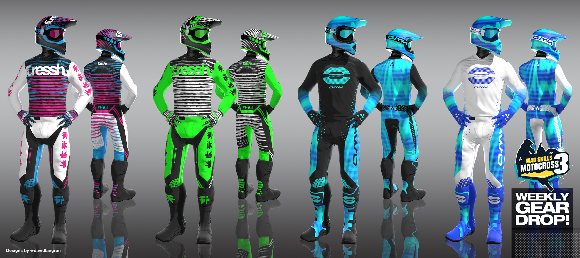 If you’re a fan of the popular moto game Mad Skills Motocross 3, check out their new Weekly Gear Drop feature, where they will be releasing new gear sets every week designed by our own art director David “Langers” Langran. Gear Drop #1 is now available for all Pro Pass Elite subscribers, or they can be picked up in the in-game shop. If you don't have the Monthly Pro Pass Elite subscription already, snag it in-game to receive every gear set in every color as soon as they are released (each gear drop will have two or three color options). There may even be a Racer X gear set in the works!