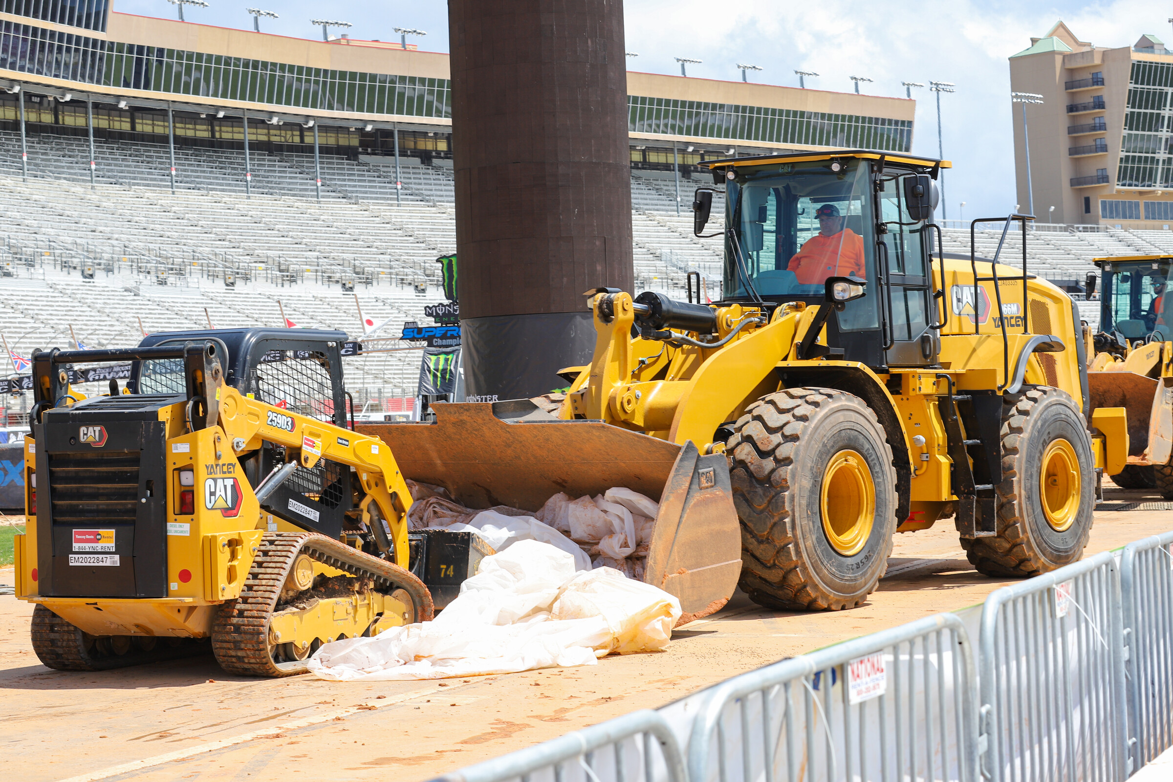 Atlanta Motor Speedway Mitch Kendra ![The Dirt Wurx crew taking the tarps off the track. About an hour later rain would come.]()