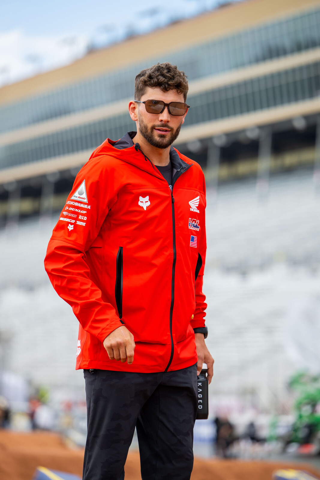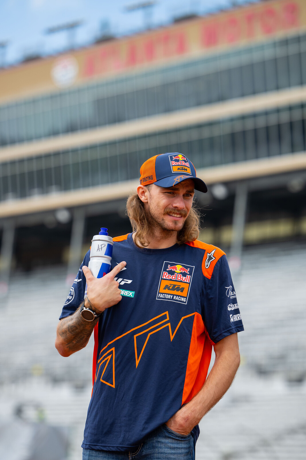 Once the rain came, we took shelter under the NASCAR garages where the teams and riders have set up shop for the weekend. Then we caught up to Nate Thrasher (two-time Atlanta Motor Speedway 250SX main event winner and second in 250SX East Region points), 250SX rookies Haiden Deegan (third in 250SX East Region points), and Caden Braswell (19th in 250SX points). Thrasher has been dealing with a knee injury—not something he is using as an excuse, but something that has been hindering him—but he said he has been able to ride more during the week. He said there are “good vibes” coming into this venue where he claimed his first two career 250SX race wins. He is hoping to replicate those performances this weekend.