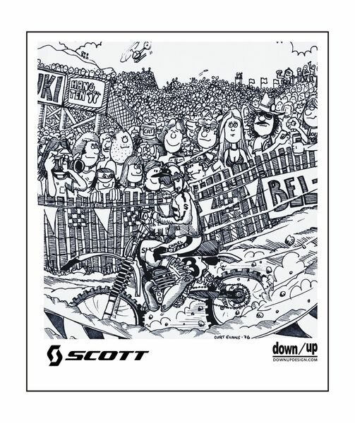 Looking ahead to next weekend, Racer X publisher Scott Wallenberg has once again put together an amazing weekend for old-school motocrossers with his Boise Inter-Am Vintage race, run at possibly the oldest motocross track in America, the Owyhee Motorcycle Club outside Boise. It's a full weekend of vintage fun, beginning with a Special Yamaha Blu-Cru Blues Party on Friday night, April 21, from 5 to 8 p.m. at the nearby Sandbar Grill on the Boise River (2900 W Chinden Blvd, Garden City, ID 83714). It's free admission and live music from the Blues Addicts, and certainly endless bench racing about the good old days. And then for the actual Inter-Am event Scott, as always, has a very special guest coming: Five-time Carlsbad 500cc U.S. Grand Prix winner Gerrit Wolsink, all the way from the Netherlands! And our friend Curt Evans of Down/Up Designs penned one of his famous illustrations of Wolsink, which you are eligible for if you pre-enter the event.