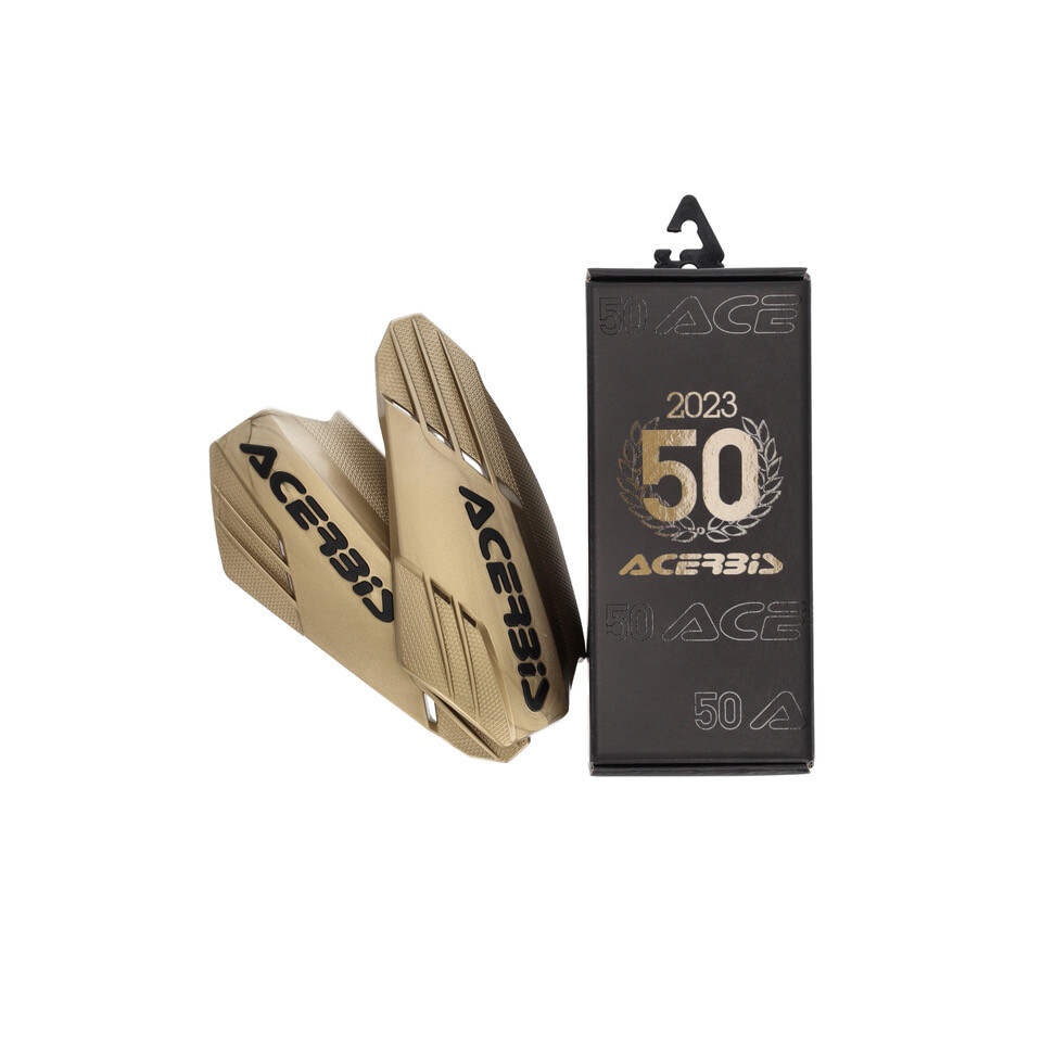 According to the Acerbis press release, "2023 marks our 50th year as a company and we couldn't be more excited to celebrate with several special unique events and projects. To begin, we will be debuting our all-new Linear handguards with a limited-edition Gold colorway. Look for top Acerbis Athlete team bikes debuting this LTD edition Gold handguard this weekend at the Arco Di Trento MXGP, the AMA Supercross in Atlanta, and at the Camp Coker Bullet GNCC. A limited release of this special color will be available beginning April 17."