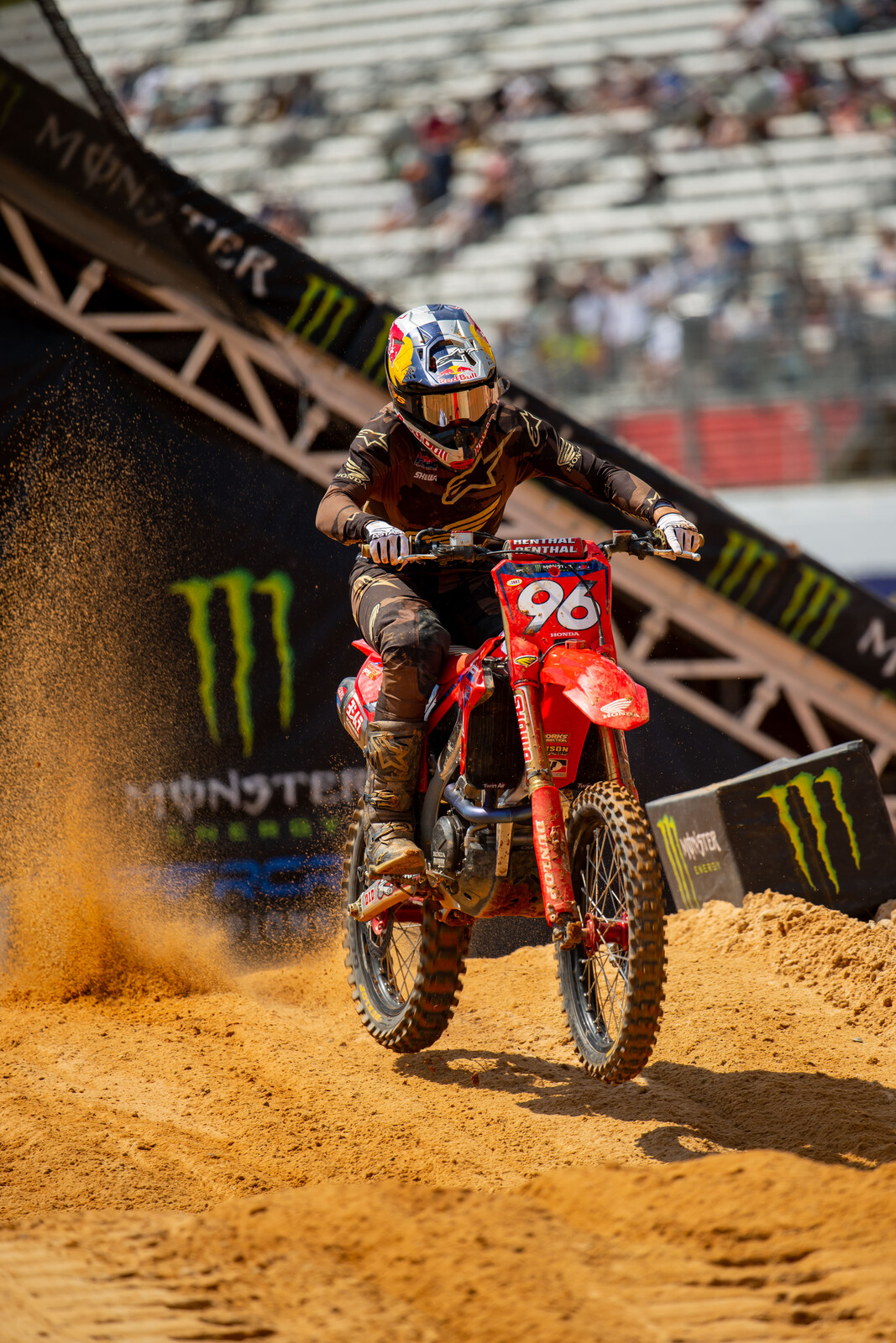 At the 2023 Atlanta Supercross, Hunter Lawrence did what he has done at every just about every race so far in the 250SX East Region: got out front early and rode home with a win. The #96 had one close call in the main event, where he almost got bucked off his machine, but otherwise he rode well en route to claiming his sixth win (of seven races so far) and his 11th career 250SX main event win. Hunter has now claimed back-to-back wins in Atlanta Motor Speedway.