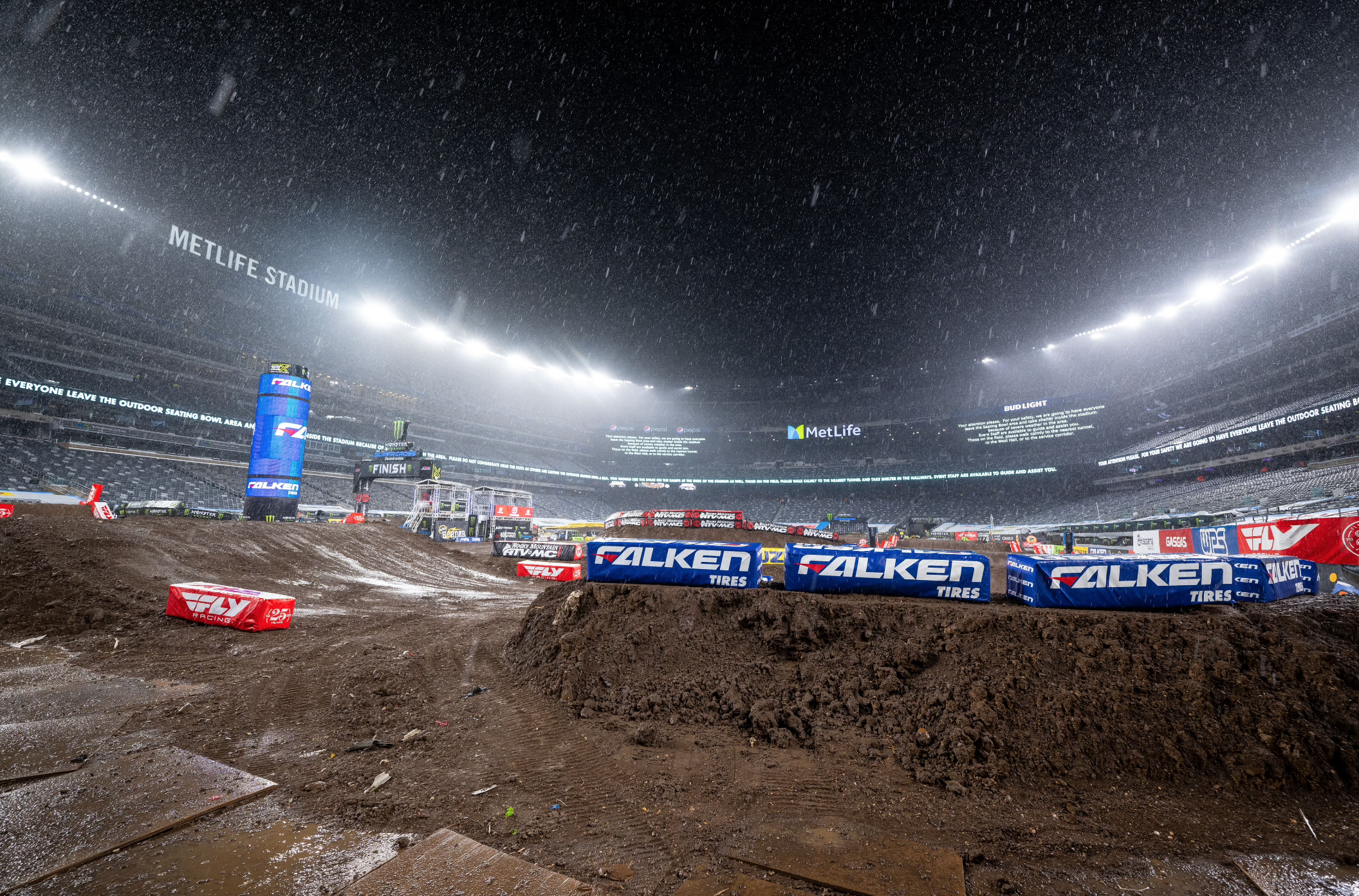 Last night, Monster Energy AMA Supercross took over MetLife Stadium in East Rutherford, New Jersey, for the 14th round of the 2023 championship. In our first (of two) 250SX East/West Showdowns we were expecting some wild racing. With the showdown bringing the 250cc divisions together—plus throw in some weather—it was quite an unpredictable day of racing at MetLife Stadium. Let’s dig into the action from an unbelievably wild round 14.