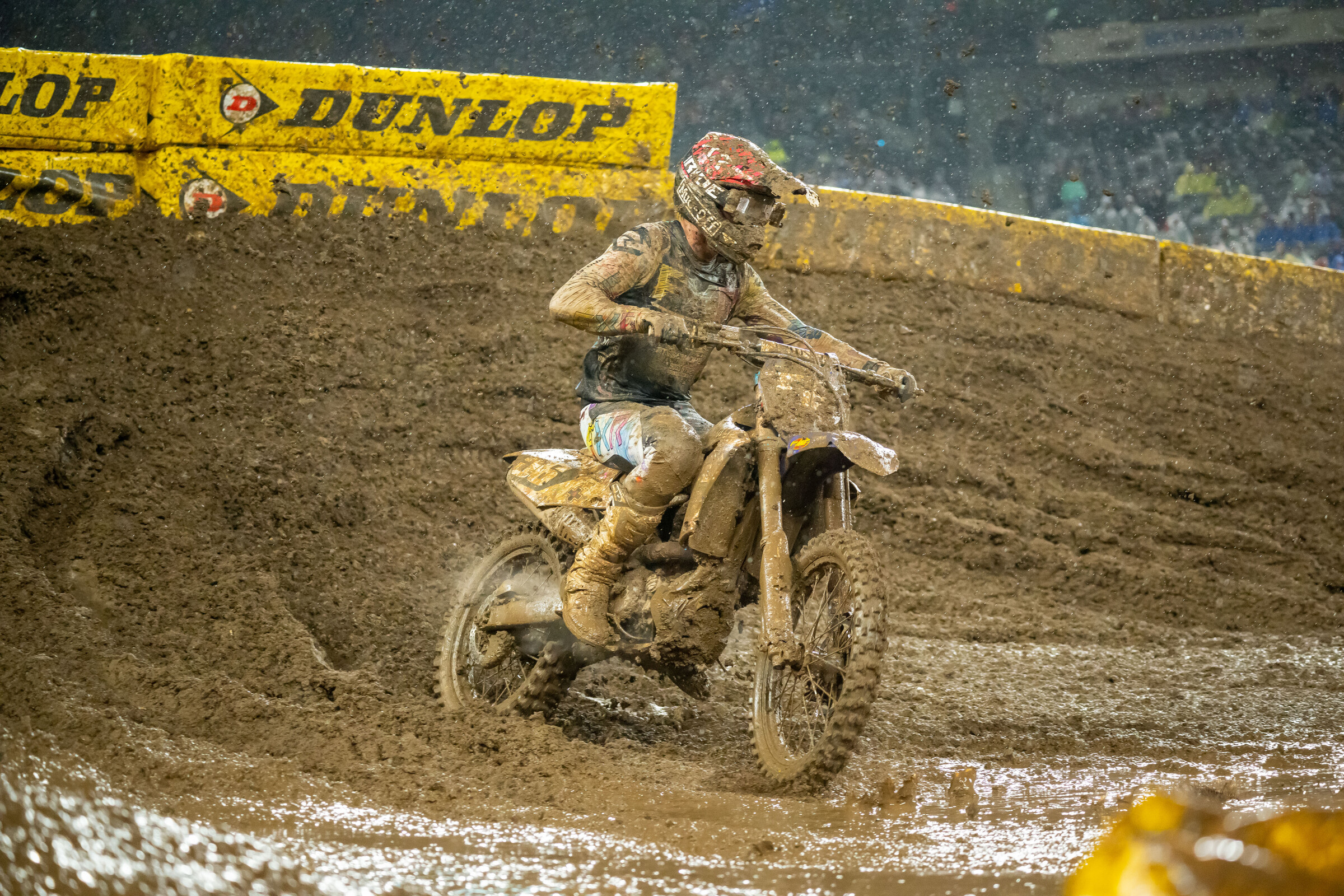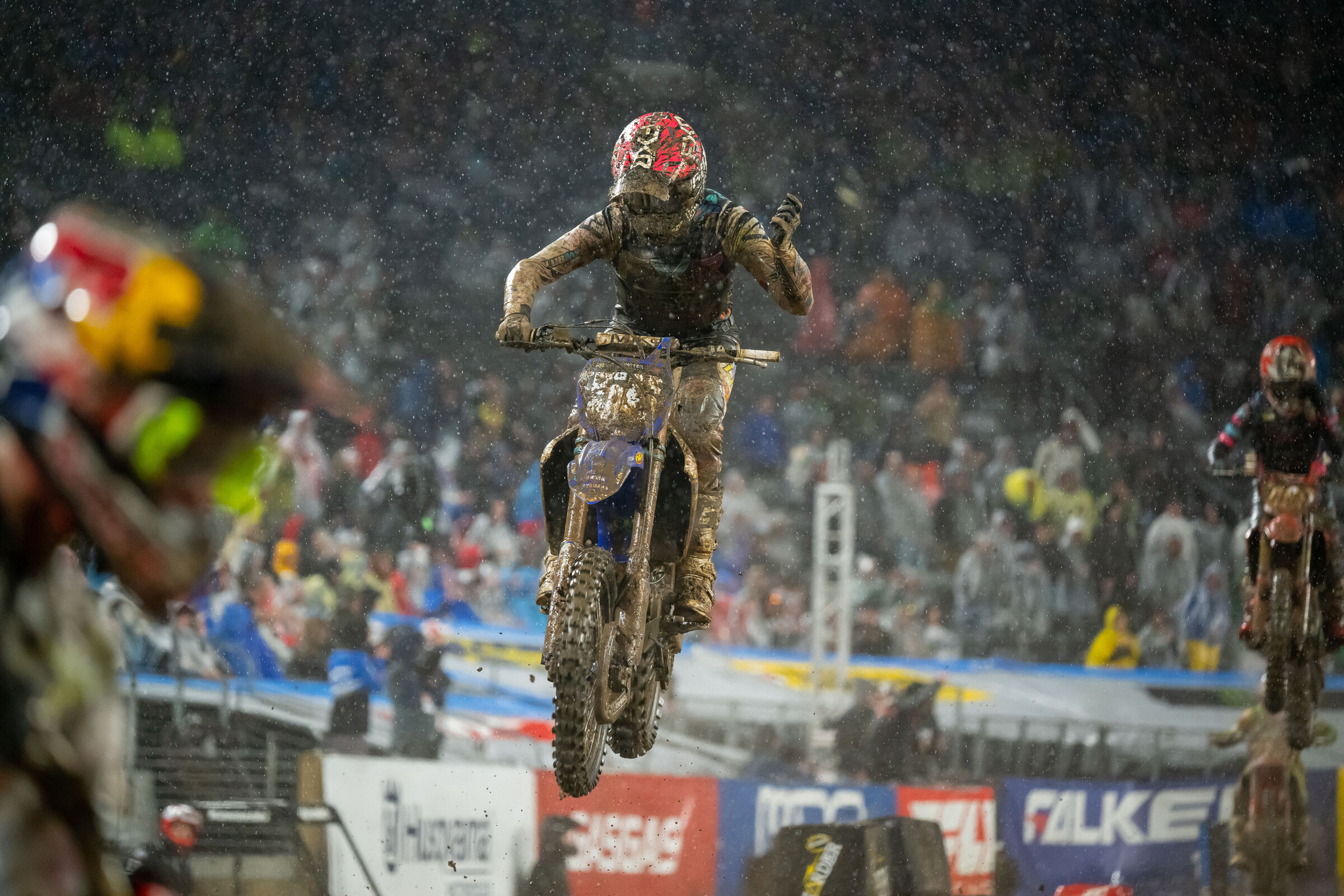 Muc-Off/FXR/ClubMX Yamaha’s Enzo Lopes capped off another great race with a fifth-place result in East Rutherford over the weekend, but it wasn’t easy. With the rain falling and Lopes not starting at the sharp end of the field, he had his work cut out to stay with the front group as the field spread out. Lopes hung right on to the Lawrence brothers ahead of them and benefitted as RJ Hampshire fell in the last turn trying to pass Jett Lawrence for second place. Now Lopes sits third in 250SX West standings in what has already been a career year for the Brazilian.