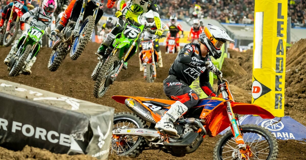 Orange Brigade Factory KTM's Julien Beaumer took his second 2023 Supercross Futures, an AMA National Championship, win in four rounds of the amateur series that's raced within the 2023 Monster Energy AMA Supercross season. Monster Energy Yamaha Star Racing's Daxton Bennick came close but had to settle for second place inside MetLife Stadium in front of a full stadium of race fans. Monster Energy Pro Circuit Kawasaki's Ryder DiFrancesco earned the final podium position after running as high as second place on the stadium Supercross track that stretched out over the home football field of the New York Giants and New York Jets.