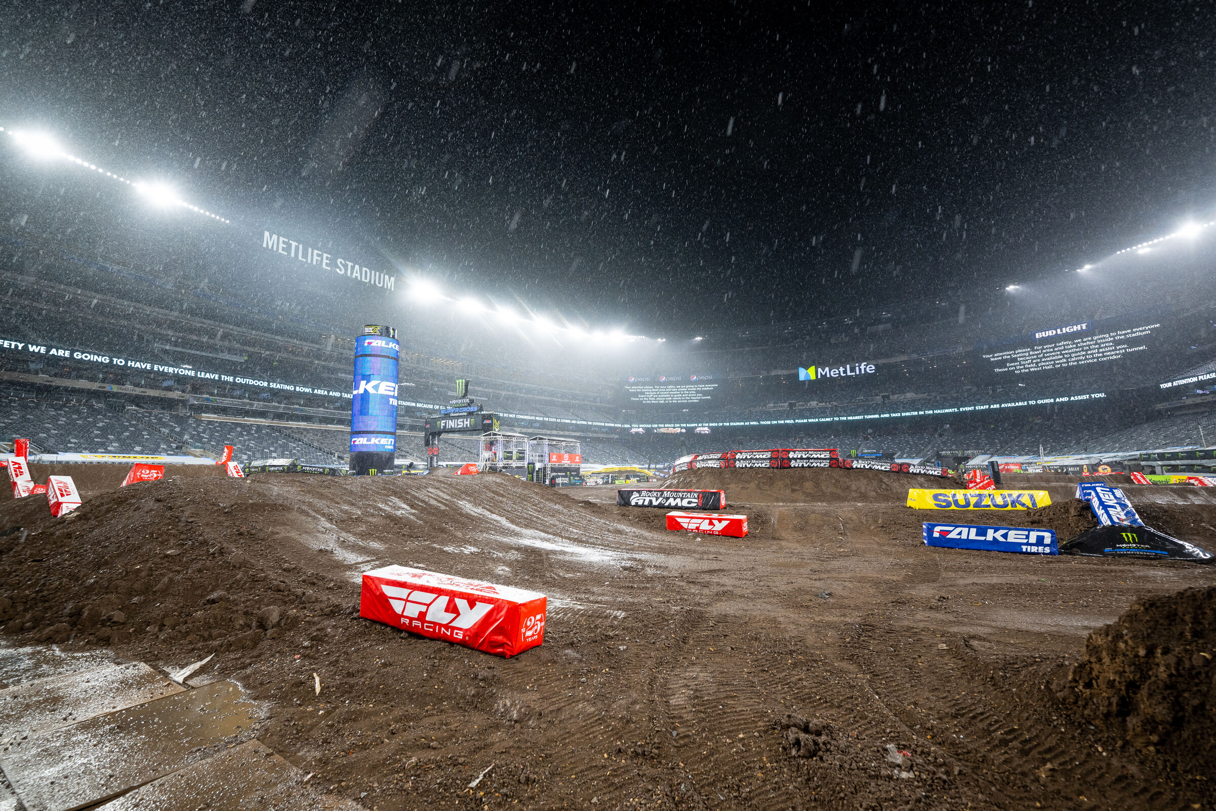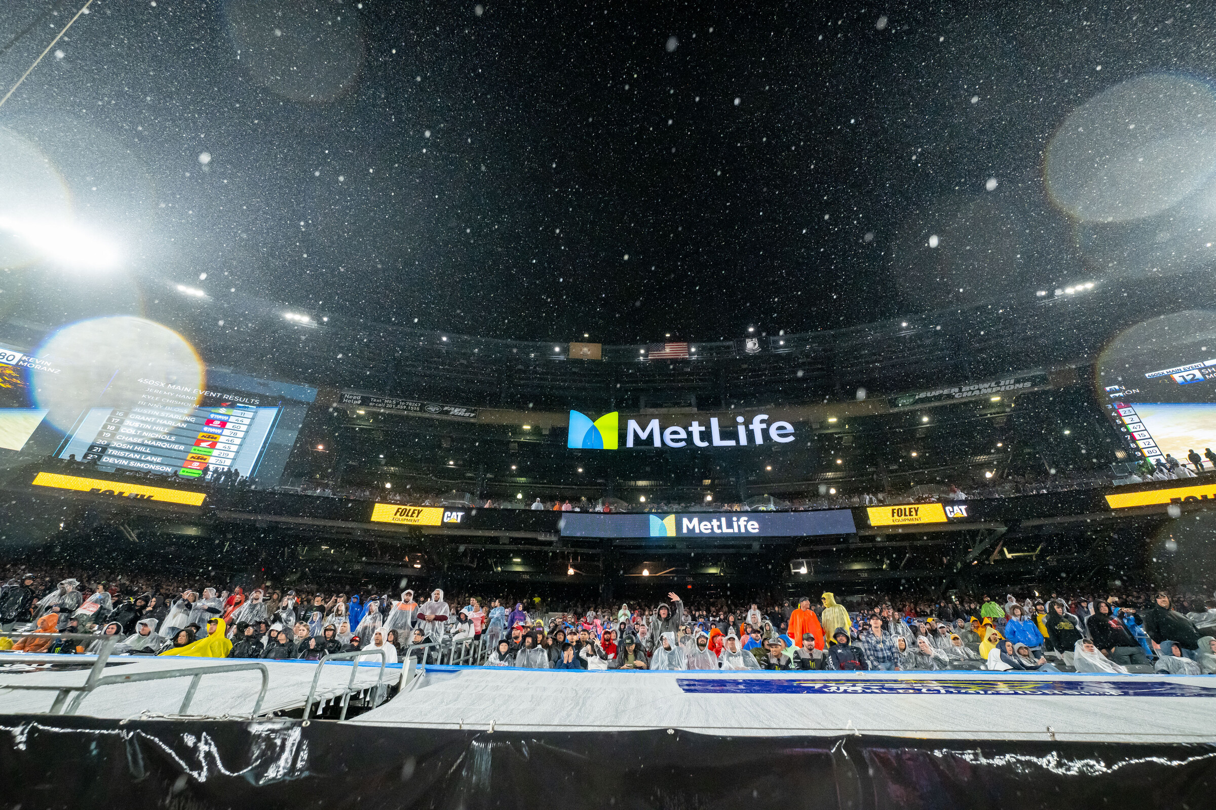 Then mother nature decided it wasn’t going to be great. I’ve never seen nor heard of a lightning delay in supercross but there’s a first for everything folks. An hour-and-a-half delay and in said delay, we got rain. Lots and lots of it, which turned the main events into a quagmire.