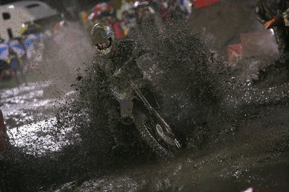 2019 San Diego SX: The race was a mudder all right, but it would gain added notoriety as "lime gate" after a drying agent was mixed it at the wrong time. Here's what the main event looked like: