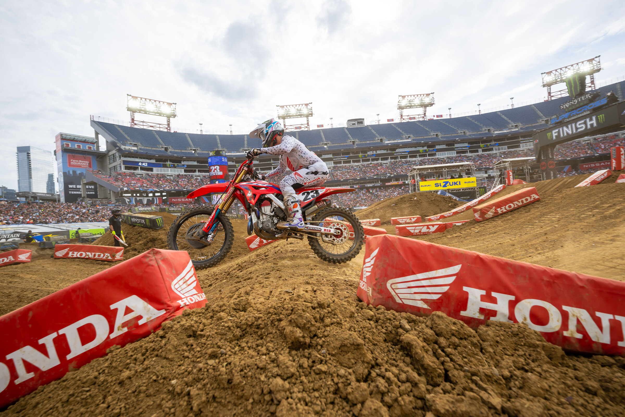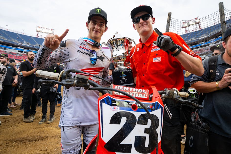 Honda HRC's Chase Sexton is finally avoiding those late-race errors that cost him so many times in the past. He's now won two of the last three races in Monster Energy AMA Supercross, but time is running out, as he sits 18 points back of Monster Energy Yamaha Star Racing's Eli Tomac. Sexton now sits second in the standings after Cooper Webb crashed out of the Nashville race over the weekend.