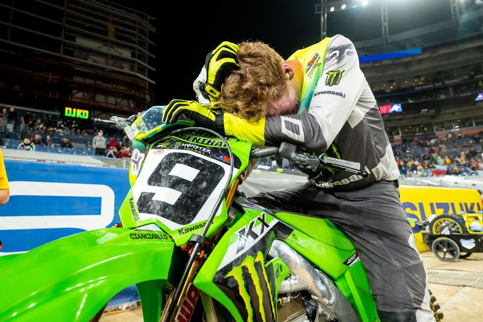 Monster Energy Kawasaki’s Adam Cianciarulo is back on the box for the first time in a long time. Yes, a slew of factory 450 supercross talent is out of action with injury, but Adam has missed more time than most, and he just needs any sort of positive step to cling to as he tries to rebuild himself, physically and mentally.