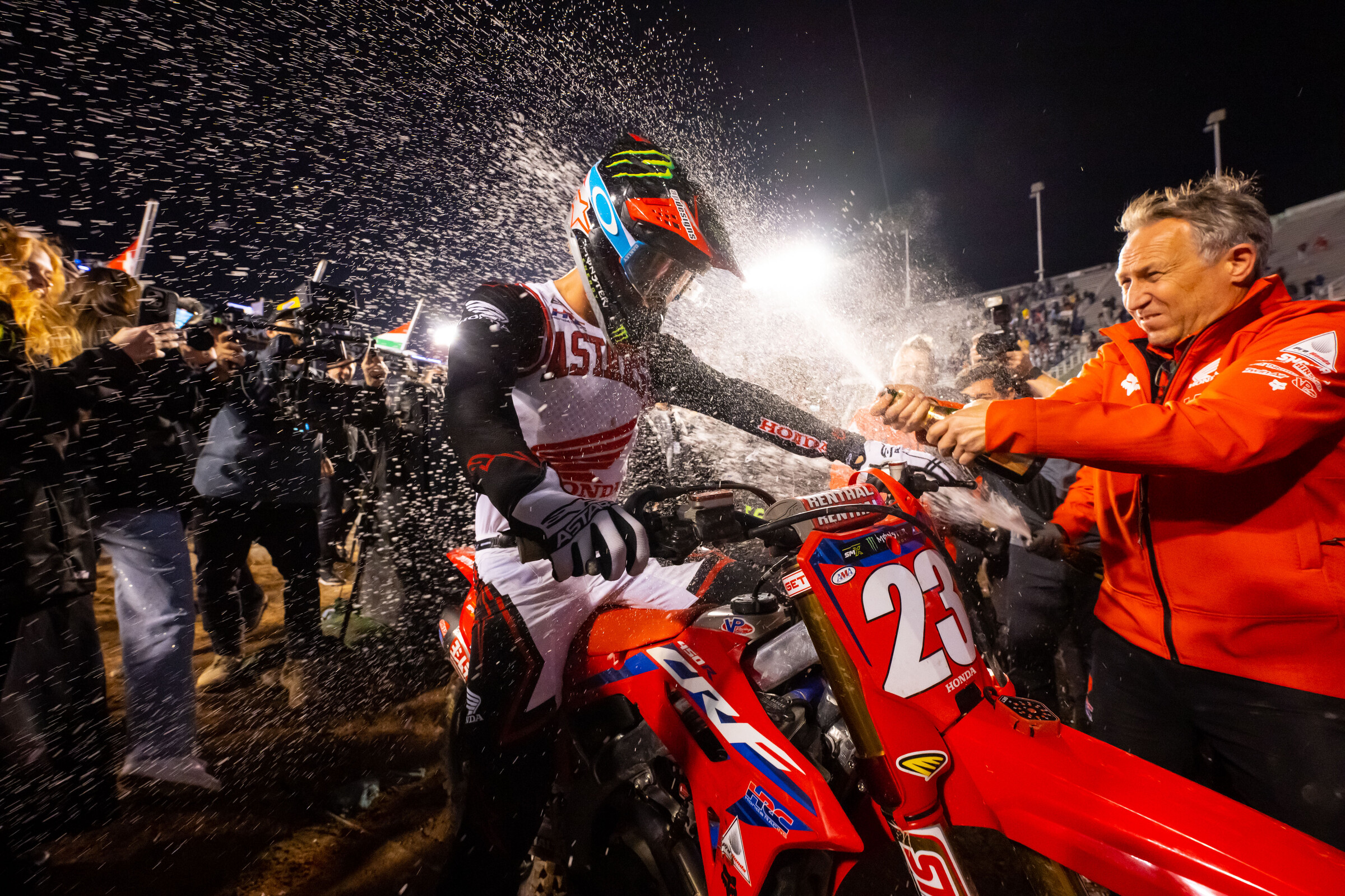 I’m pretty sure my words were when I came off of [GEICO Honda in] 2020, I told either Brandon [Wilson] or Bill [Savino] from Honda, I’m like, I will win you guys a championship before I leave here. That was maybe a little bit arrogant to say, but I really believed in myself. It’s pretty cool to win them a championship. I was obviously close last year in outdoors and didn’t get it done. It’s cool to get it done in supercross. This is obviously not the main championship, but there’s a lot of hype around this one. I have a loss of words. I’m super happy with how the team has really rallied around me this year. They put a lot of work into the bike. It’s so much better than what we ended on last year. It just goes to show how hard those guys work. It means a lot to be a part of that team.