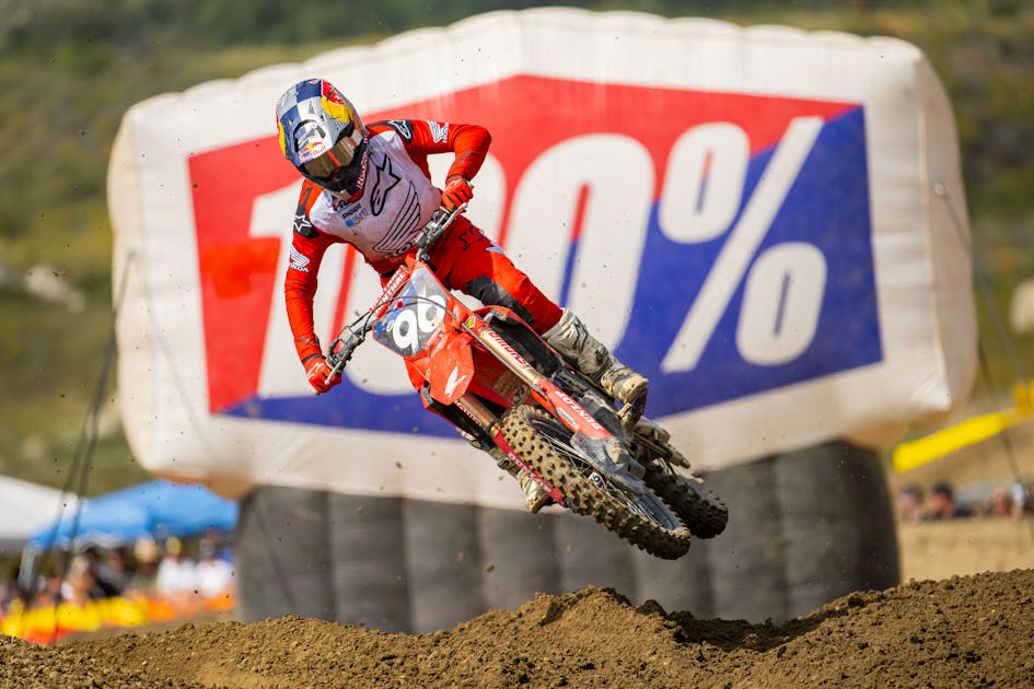 Yes and no. I had a massive crash on Monday and I’ve torn all the fascia and cartilage off my rib. So, I did three laps on press day. I’m a gamer and I was going to show up to win, but I’m like, hey, I’ll be happy with a top five. Just damage control. Like I said, Thursday I could barely even ride. So, it was good. I feel like on this track, the second moto, I definitely made my life easier because coming through the pack, this track it’s so hard to push faster than the set pace, let’s say, just because of how the track forms up and stuff. It’s like it has a set pace. Once you get your rhythm, that’s all you can really get out of it. You’ve seen with Jett and Chase. They didn’t really drop the hammer like some other tracks where there’s two and three seconds coming off their lap time towards the end. It was kind of set pace. You could maybe go faster, but you could end up on the ground.