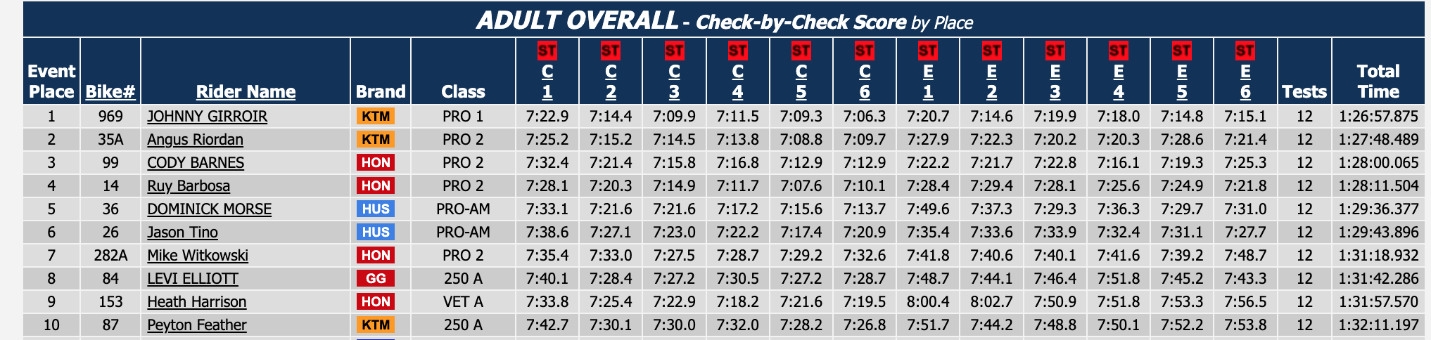 | Johnny Girroir (KTM) | U.S. Sprint Enduro | Pro |