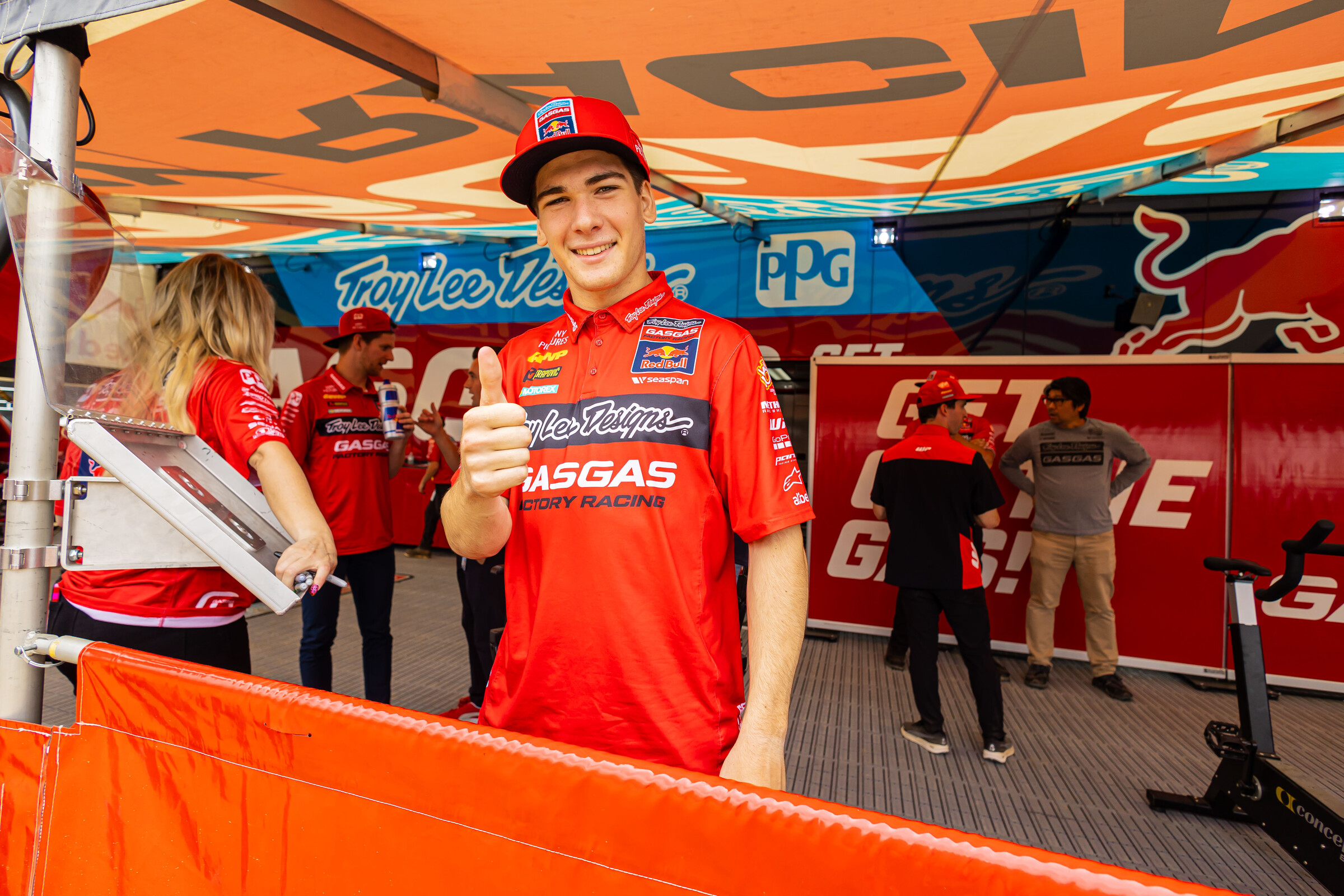 Caden Braswell: Well, they were a little bit more than I expected I am not going to lie. I didn’t quite meet my expectations. So, it frustrated the living tar out of me. I will say I had a blast, and I did it for a great team, Red Bull Troy Lee Designs GasGas. We got here this morning, coolest rig in the pits, music was playing, it was just amazing. And then they show us our gear for the day and it's this Sony Spiderman gear, insane. So, I knew I was the coolest looking dude out there, other than my teammate. We were the coolest people out there. I felt cool, everything was just coming together, and I was like, “Alright today is a good day to have a good day.” And then I raced, you know? And they’re very gracious, the bike deserves to win, and I didn’t put it up there as far as I wanted to and that frustrates me. But looking to the positives I got to spend my Saturday racing for a really cool team at an awesome place, and great competition. I had a blast, I am not going to lie. I gave it my best that’s all I can do. It just eats at me a little bit ya know? It lights a fire under your belly. Coming into Hangtown I want to improve a lot. I don’t want to be the guy that lists off all of my sponsors, but we have a lot of cool sponsors that support our team and make all of this possible. It's actually a pretty cool story behind today. So Mr. Troy Lee painted the top of my helmet, and I was like, “No way, THE Troy Lee painted my helmet.” And just little things like that just made my day. I’ve got a great team around me and some amazing supporters that are making this possible. So just a big thank you to them and then all of the glory to God.