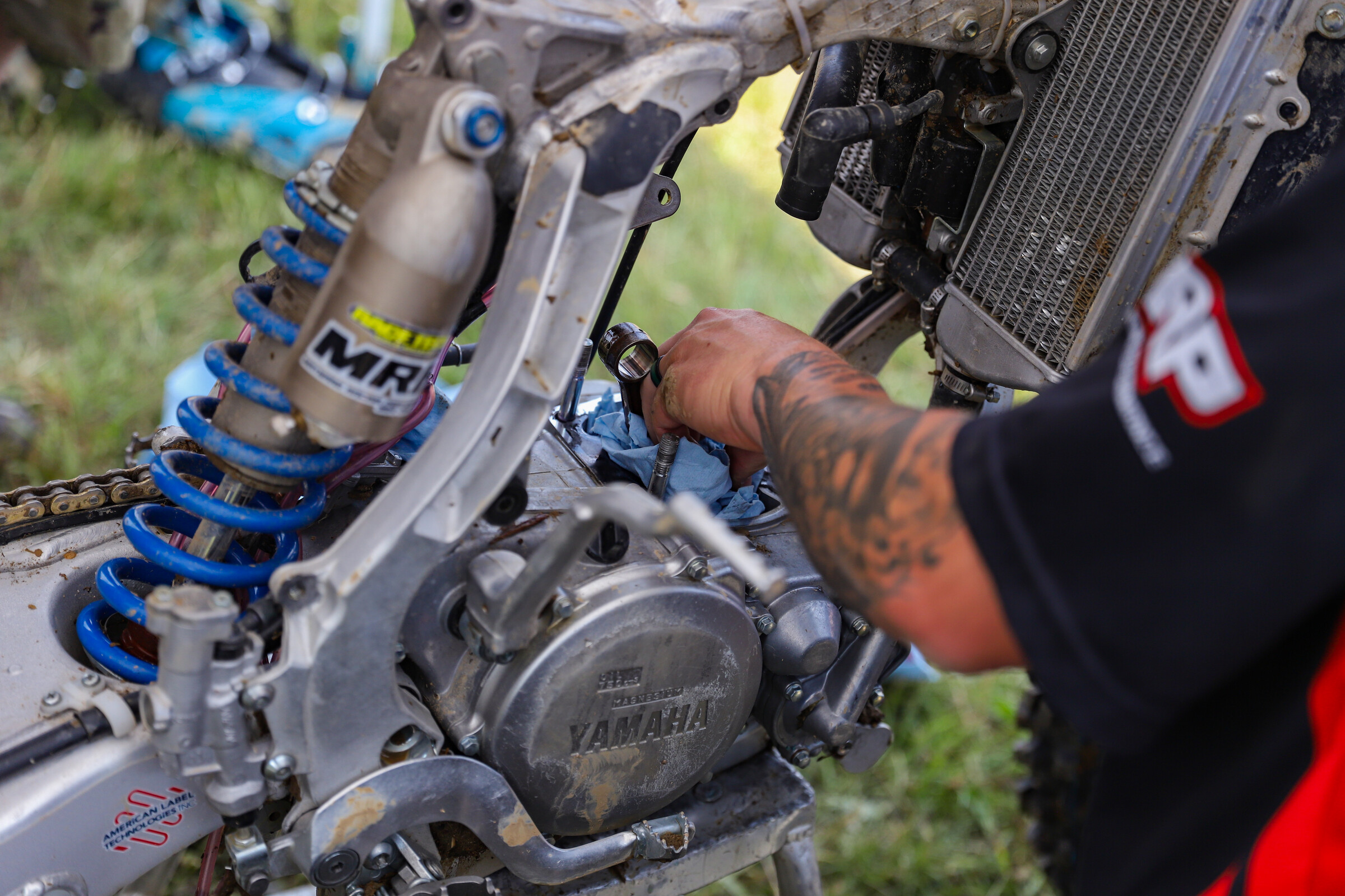 Matt Burkeen and crew tore apart the top end of his Yamaha YZ250 two-stroke after the first moto in order to swap the piston after he said it was running lean. He even had to borrow a base gasket from fellow two-stroker Jared Lesher! The Burkeen camp pulled off the swap just in time for the second moto, but Burkeen said the throttle was sticking so he had to pull off in the second moto as well. Check out our best post-race show tomorrow for more on Burkeen and his two-stroke. He went 39-39 for 40th overall.