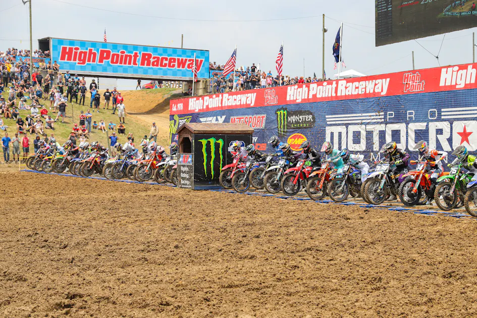On Saturday, the AMA Pro Motocross Championship took over High Point Raceway in Mt. Morris, Pennsylvania, for the fourth round of the season. Heavy rainfall on both Thursday and Friday provided a sloppy track in the morning qualifying sessions, but the sun eventually appeared and helped dry up the circuit. In our first East Coast Pro Motocross race of the summer, we saw result trends that continued from the previous three rounds. Both classes provided us with great racing all day long as fans packed in the venue, covering the many rolling hills to cheer on their favorite riders. Let’s dig into the action from round four.