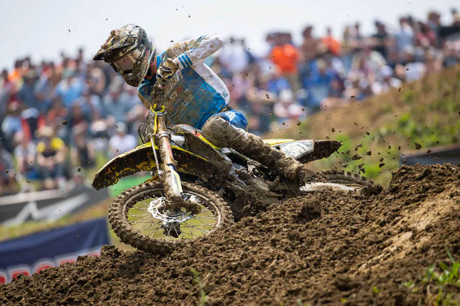 At the High Point National, BarX Suzuki’s Derek Drake brought home another top-ten moto finish in the first 450 Class moto (ninth place) and his second top-ten overall after a 12th-place finish in moto two. His 250cc teammates Dilan Schwartz (14-9 for 12th overall) and Chase Yentzer (17-17 for 17th overall) rode home solid finishes in their own rights. Schwartz’s results have been improving each week and he cracked the top ten for the first time this season, and Pennsylvania native Yentzer earned eight points at his home race, only a week after earning his first ever Pro Motocross points in Colorado. After the race, I caught up to the trio in the media scrum to get their respective thoughts on the day.