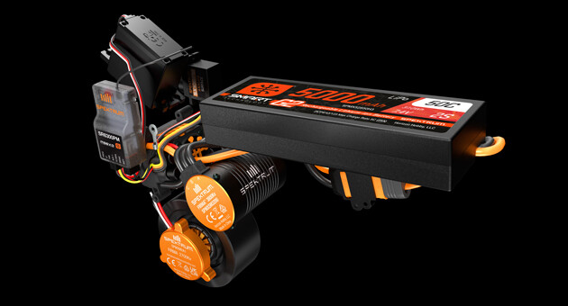 The heart of the Promoto-MX powertrain is a robust Spektrum Smart Brushless System, featuring a 3800Kv 4-pole brushless motor and 85A Smart ESC. It gets you moving out of the gate HOT, with enough torque to clear large triples and 40+ mph top speeds on a 2S LiPo battery. The durable drivetrain is true to scale, with chain drive that lets your rear tire rip whenever you're ready to send it! An innovative front and rear wheel braking system does its part to give the bike impressive stopping power, cutting the stopping distance in half compared to rear brake only.
