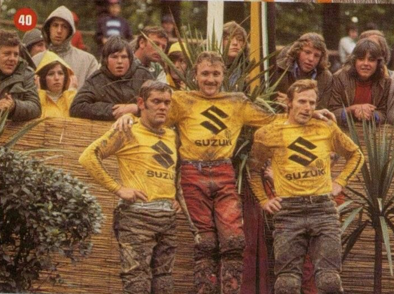 One of my favorite photos from my motocross childhood was a podium photo from the 1974 German 250cc Grand Prix. It was three Suzuki teammates, all Belgians, sharing the podium: Overall winner Gaston Rahier, runner-up Joel Robert, and thrid-place Sylvain Geboers. This was during the height of Belgium's long reign atop the motocross world, which stretched from the days of Robert in the mid-sixties through the 1980s with the late Andre Malherbe, Georges Jobe and Eric Geboers. In '74 Robert was nearing the end of his career, as was Sylvain Geboers. Rahier was getting ready to move down to the news 125 class and win his first of three FIM world titles. They also had Roger DeCoster in his prime in the 500 class, and Harry Everts about to win the '75 250cc world titles aboard an Austria-made Puch. The Belgians also spent most of the seventies dominating the FIM Motocross and Trophee des Nations.