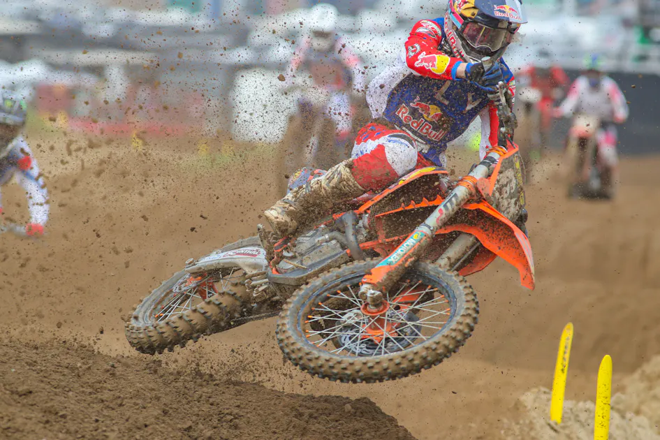 Ryder McNabb: It was pretty good. Started off—it was pretty foggy this morning. Didn't really see much in first qualifying, qualified like 11th or something and then went out, and second qualifying got like, second or something. And then once it was combined, I was like eighth or something. And then moto one didn't get a great start. The board went sideways, and they dropped the gate. So that was a little hectic and yeah, it was that I put my head down and went to work, ended up second. And then moto two, another bad start—Casey got tangled in the rut or something to come over on me at my front wheel and stuff. And then yeah, it was, I mean, it was good. I put my head down and went to work, ended up third, right on Julien at the end there. But yeah, it was a fun day. The track was awesome. Just super pumped that I could come do this.