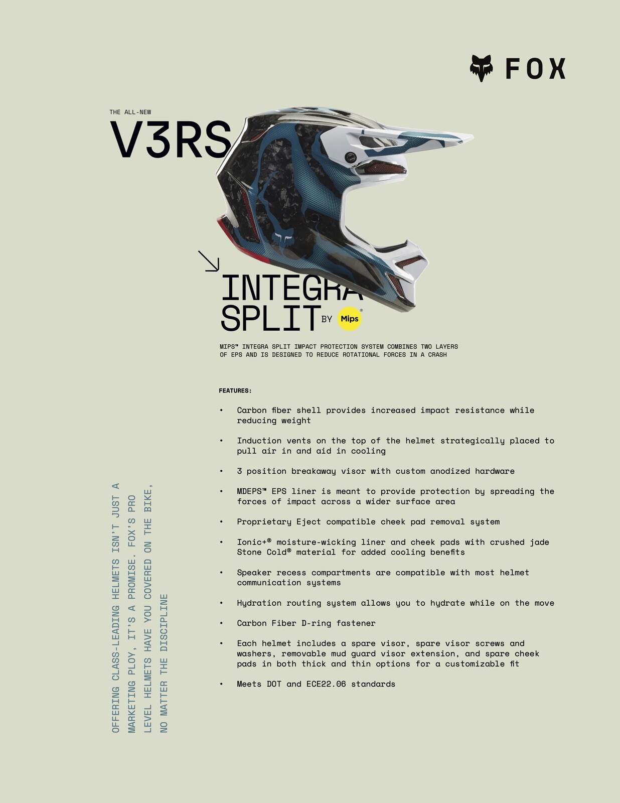 Fox Racing gave us a sneak peek of its soon-to-be-released all-new V3 RS helmet. Adam Cianciarulo debuted the new helmet at the Southwick National. The helmet will be available later this year. Check out some information on the helmet, provided by Fox Racing.