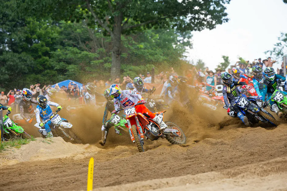 Well, well, well this 250MX series just turned into a spicy meatball, huh? That’s what happens when you score no points in two straight motos, ala Hunter Lawrence. One crash DNF and one bike break later, and that points lead is gone.
