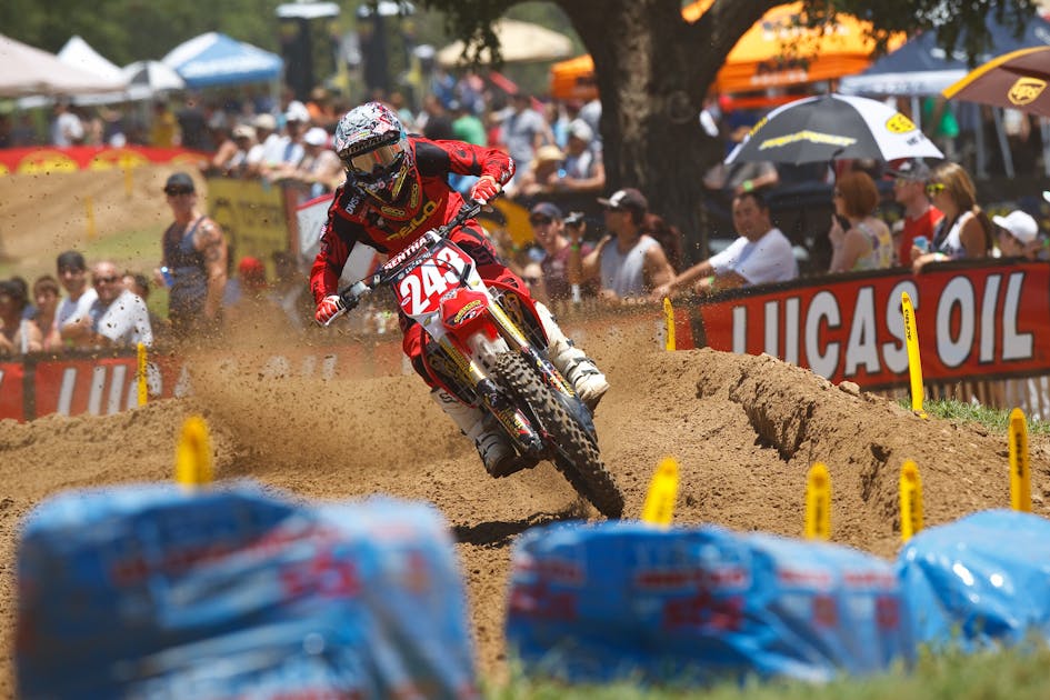 Pourcel (once again) and Tomac: Pourcel in 2010 was the last three-digit rider to lead the points and wear the red plates, but he wasn't the only one that summer. AMA Pro Motocross saw the debut of #243 Eli Tomac on the GEICO Honda at Hangtown, and the kid shocked everyone by winning the first round. That gave him the points lead and the red plates for round two in Texas, but he struggled in the heat that day, got heat exhaustion and took some time to recover.