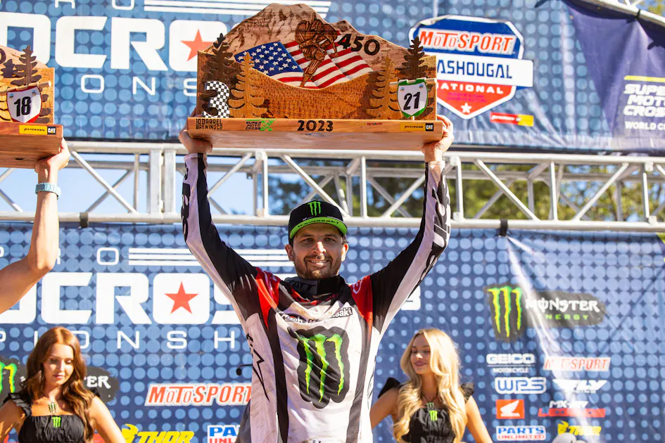 Been a slow grind toward the front for Monster Energy Kawasaki’s Jason Anderson, who missed significant time with broken vertebrae before finally returning to action at RedBud. Since then we’ve seen him have to manage the energy use in each race, especially the second motos, but at Washougal he was finally good enough to log two solid motos. The reward? A podium finish, his first time on the box since the Houston supercross back in February!