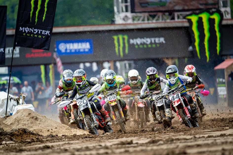 Featuring the first moto of the day, the 250 B Limited class, won by Jeremy Fappani (KTM, 75) over Leum Oehlhof (32, Yamaha). After a long rain delay, the 65cc (10-11) Limited class took off in the mud, won by Easton Graves (31, KTM). We also show the 250B class, with heartbreak for first moto winner Casey Cochran, who went out with a shoulder injury. Krystian Janik (27, Kawasaki) took the win over Drew Adams (30, Kawasaki) and Logan Best (26, Yamaha).