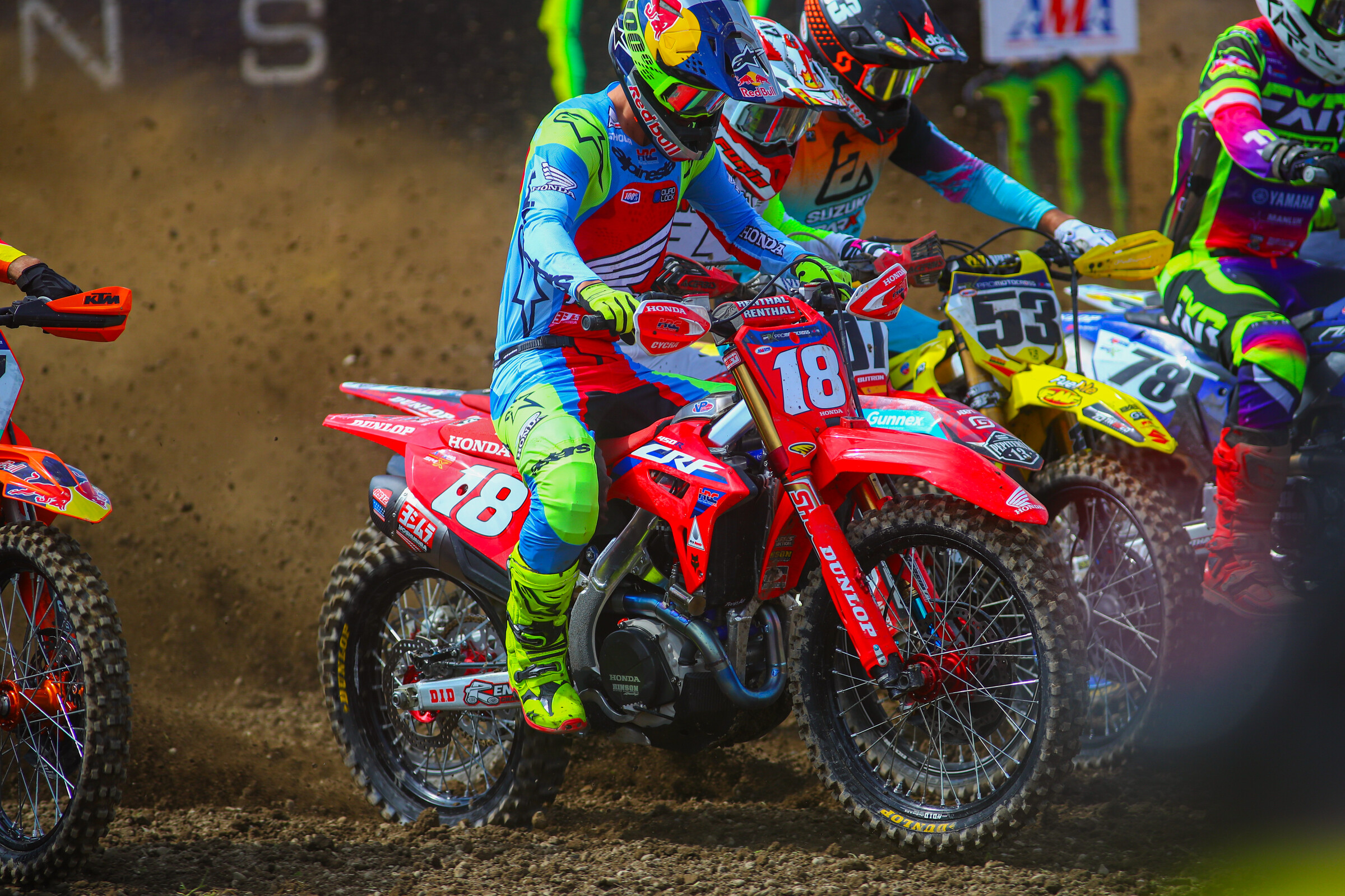 “That second moto, some races like Washougal I was not really feeling great and not really had the speed and I was getting holeshots, and this track where I was feeling great today and trying to get a holeshot, I broke my holeshot device or plastic fork,” Ferrandis said. “I don't know exactly what broke, but two feet after the gate. Obviously the bike wheelied and it was over. Just lack of luck. I don't know why it happened today. Sucked, but it is what it is. Then I was dead last in the first turn and I had to come back from behind. But still a better day for me. It’s the first race of the season where I was able to fight with the Honda boys.”