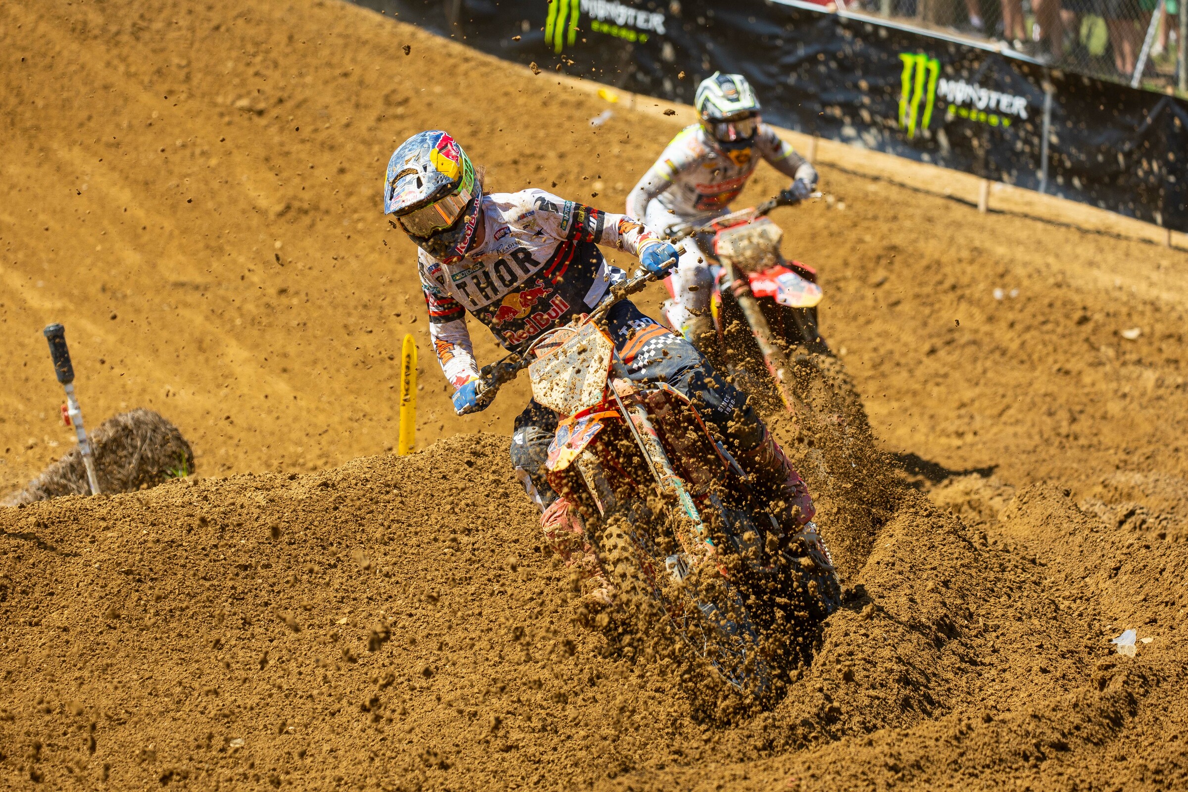 Yeah, he was riding really good. It was, like Jason said, it’s so hard to pass out there because this track usually funnels into one line, and then obviously it was hard as concrete out there in some places. I just had to think. He made me think more than I usually think. [Laughs] And yeah, I mean, I got the pass and then he was trying and trying and trying to get me but I just, you know, I just said, "be perfect and hit your marks and everything" and I didn’t make mistakes, it was honestly probably the best last couple of laps of the moto that I’ve ever done just because I wanted it. But yeah, he was riding good, I was riding good, my bike was working unreal and yeah, luckily, I did get him for second because, you know, it feels good. [Laughs]