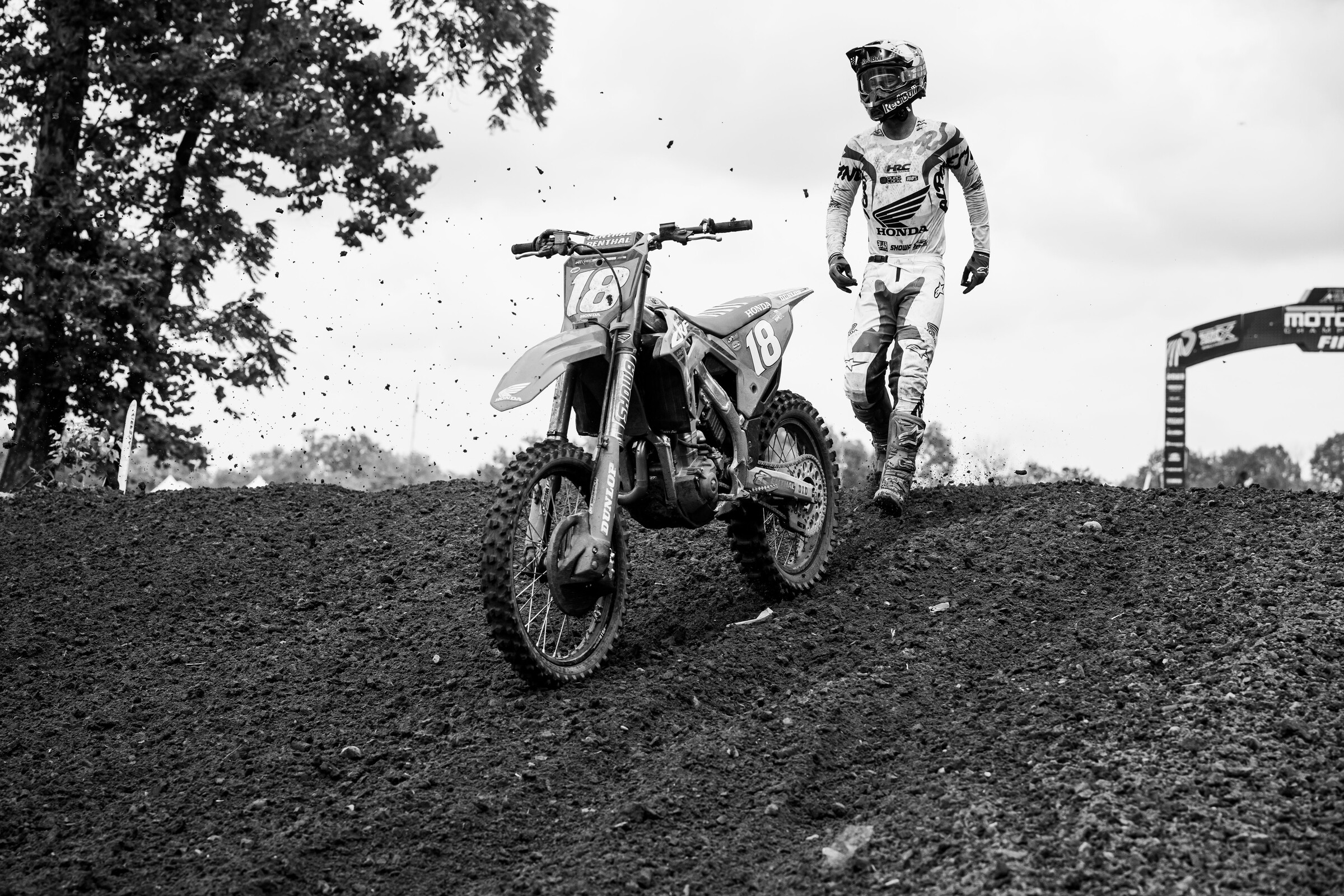 Speaking of elevating each other’s game, Hunter, congratulations on a remarkable season also. Had some ups and downs, had to come through that RedBud first turn crash, battle an injury—ribs—early on in the season. Then had a mechanical. At that point, you lost the championship lead and came back almost with vengeance. The first moto, you knew it was in your hands. If you won that first moto, at that point you mathematically eliminated everybody. You had the championship. Then the second corner, you see it. A crash happens. You mentioned earlier that you saw the bike was number 32 that was having trouble. So, what did your game plan at that point become, knowing your nearest competitor was behind you and on the ground?