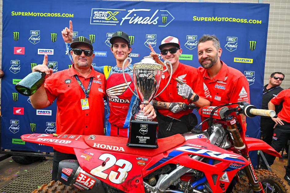 After his 2023 AMA Pro Motocross Championship season, Chase Sexton was left with not only frustration, but determination—determination that paid off well at zMAX Dragway on Saturday. Sexton went into the day with a confidence he hasn't felt since his 450SX Monster Energy AMA Supercross Championship season, and was able to finally get his hands back on that 450 class moto win. Going 1-1 for the day, the #23 put an end to Jett Lawrence's perfect win streak in the 450cc class and got his mojo back. Chase knew what he had in him, and he came prepared to release that beast at the SuperMotocross World Championship (SMX) playoffs round one. See what he had to say about it all in the post-race press conference below!