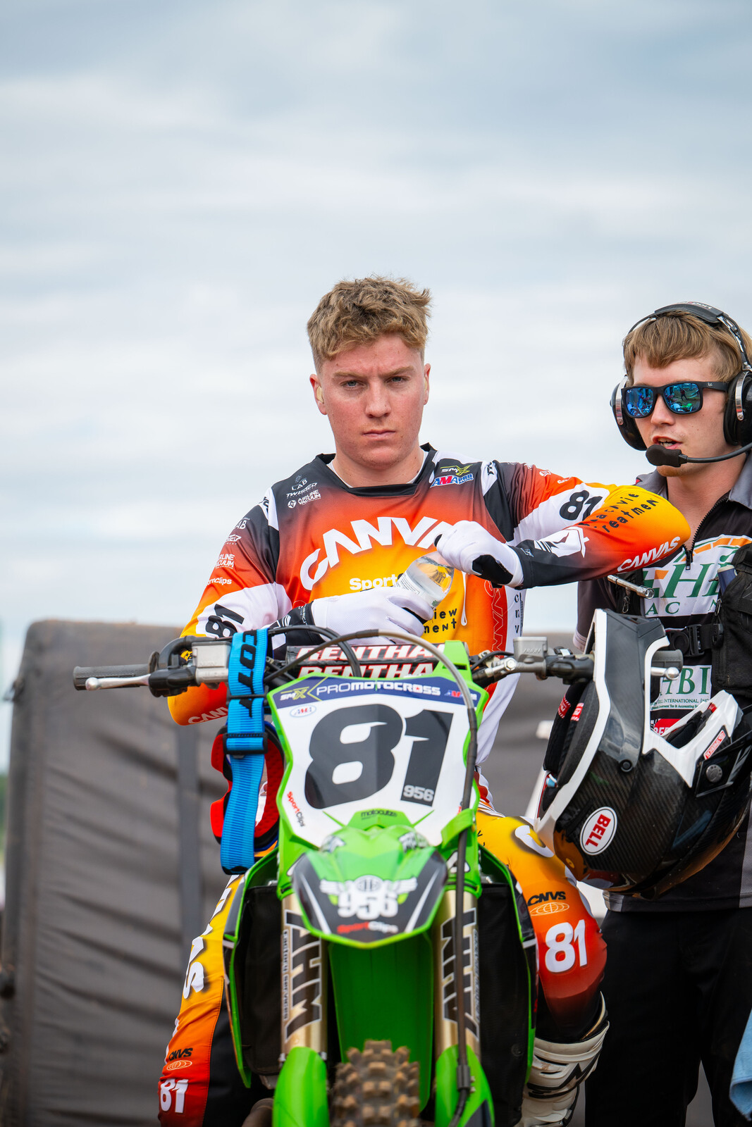 Ty Masterpool: Ah it’s hard to put a percentage but I was in the hospital for two and a half days, I got eight IV bags of antibiotics—they’re so strong they have to put it in super slow. It takes like four hours for half a bottle of this [holds up shaker bottle] to go in you, because it’ll burn your veins. So, and then I just finished my antibiotic pills yesterday morning, so my stomach feels like I’ve been eating Taco Bell four meals a day. [Laughs] But yeah, my energy is really bad, I couldn’t even eat anything in between the motos, I just couldn’t get anything in my stomach, felt like I was throwing up. So, little bummed on today but realizing where I was last week, I definitely didn’t think I was gonna be here so gotta be thankful, it was the cards I’m dealt with, but yeah definitely crazy. My energy’s just really bad. And second moto dude, third lap, I could feel pain. Because if I get pain in it I have to go straight to the hospital and get surgery so, I’m like, I have to be super cautious. I’m not going against doctor’s orders, dude, everyone’s giving me crap. I’m not going against doctor’s orders and all that, I’m not risking it. But yeah. It’s serious if it ruptures, it’s life threatening so I have to take it super easy and really feel the pain, but it’s not too much worse.
