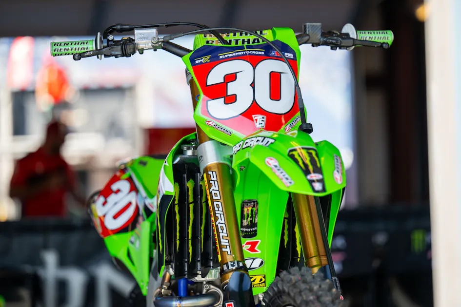 Tom Vialle mentioned after the Charlotte SMX round that he liked the hybrid style track and has been feeling more comfortable on supercross than he was at the beginning of the year. He was also the only 250 rider to land on the podium both motos in Charlotte with 3-2 moto scores. Could the Frenchman have found his niche? We will see this weekend in Chicago. -Sarah Whitmore