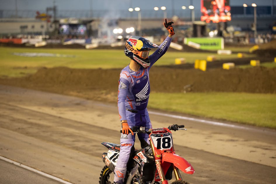 Jett Lawrence: Definitely was lighting that fire, for sure. After the weekend before and you do so bad, people only know you for your last race, really. So, I didn’t want to do another weekend like that. So, definitely the motivation from that helped a lot. Working on our starts was a very big thing for us, and ended up proving it today. Back to a regular kind of start definitely helped, but just kind of getting off the gate more consistent and stuff helped a lot. But like you said, the loss from last weekend hurt a lot and motivated me a lot more to try and make sure I come out here swinging.