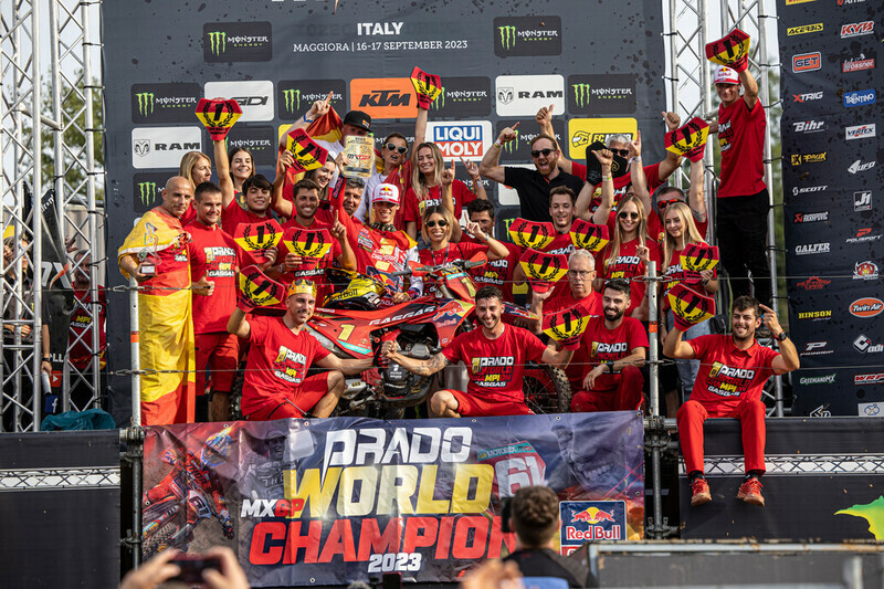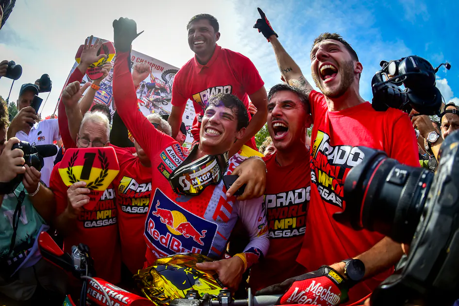 Jorge Prado: Yes, it is something very, very special, for me it is a dream come true. Since I was a kid, my only dream was to be MXGP World Champion. And I think all of the titles throughout the years were kind of preparation for 2023 when I had to opportunity and possibility because I worked, and the team worked, all in one perfect way. So, we had to opportunity to fight for this title and all of the years of preparation helped me to make it happen. When I crossed the finish line and I saw all of my friends, my family, my team, the close people around me, celebrating this title, it meant the world to me because we all know how hard it is to get World Champion. And sometimes you go for years where you think, “It's never going to happen” or you think it's very impossible to make it. But I think when you start thinking positive and you wake up every day working hard to get your dream done, I think it is a big advantage. When you love the sport and love what you do, I think it is the most important thing to do to make it a reality. I think the people around me also wake up every day with the dream of becoming MXGP World Champion, so I think that’s why this year we got it done. So, it was super special for me and super special for the team. And having an Italian team and winning in Italy, it was just the perfect place for them as well. So, I proud that I could make it happen for them there. Also, for the brand, for GasGas, the first World title for GasGas and also for Spain, the first ever Spanish guy winning MXGP. So, it was just a combination of so many things that made that day super special, and winning made it even better, even sweeter. I am out of words; the feeling is very difficult to describe.