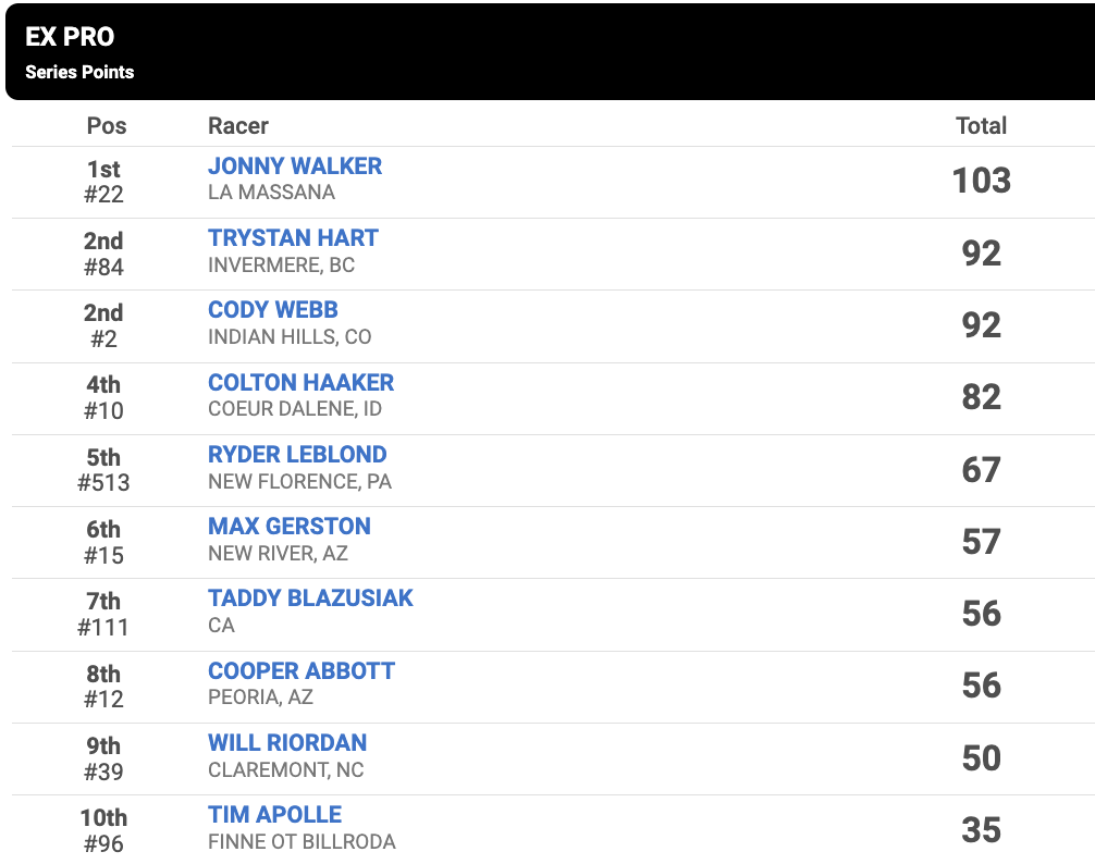 | Toby Cleveland (Husqvarna) | GNCC | XC3 |